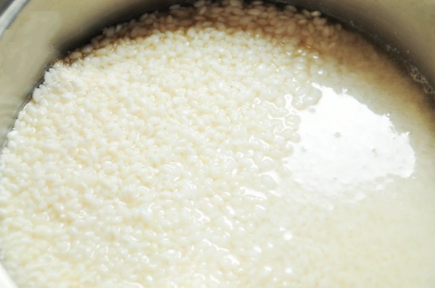 2、糯米提前浸泡6个小时,用手一捻能碎成两半即可;