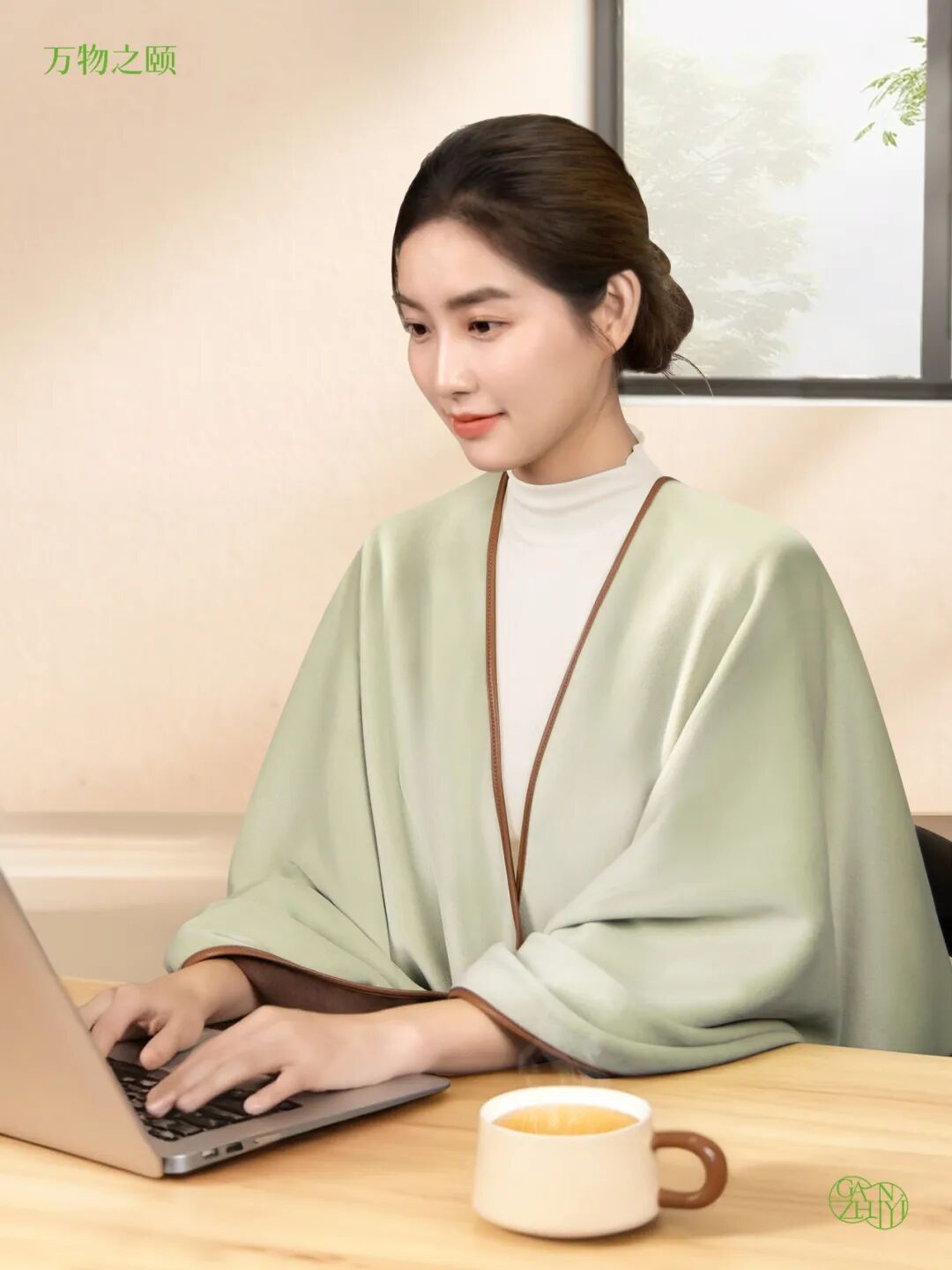 定制灰绿、茶褐色两款配色,百搭衬肤色,温柔显气质;面料采用温暖细腻的云朵绒,居家休息、办公御寒、午后小憩都适用,是随身携带的温暖好物。