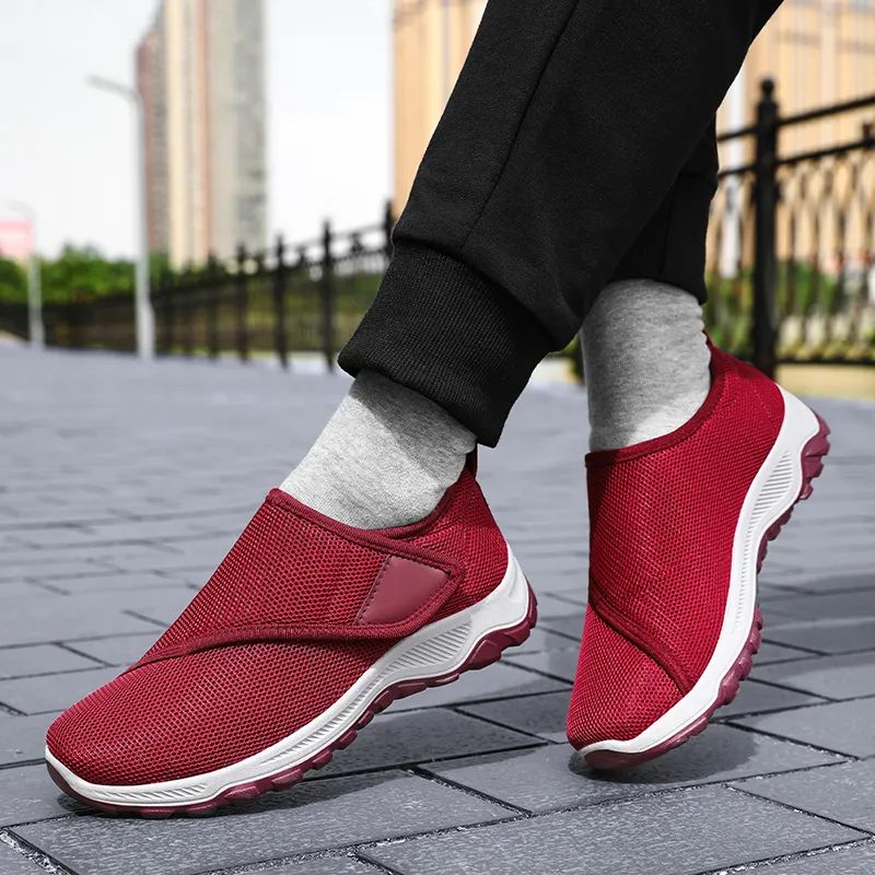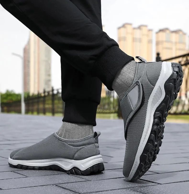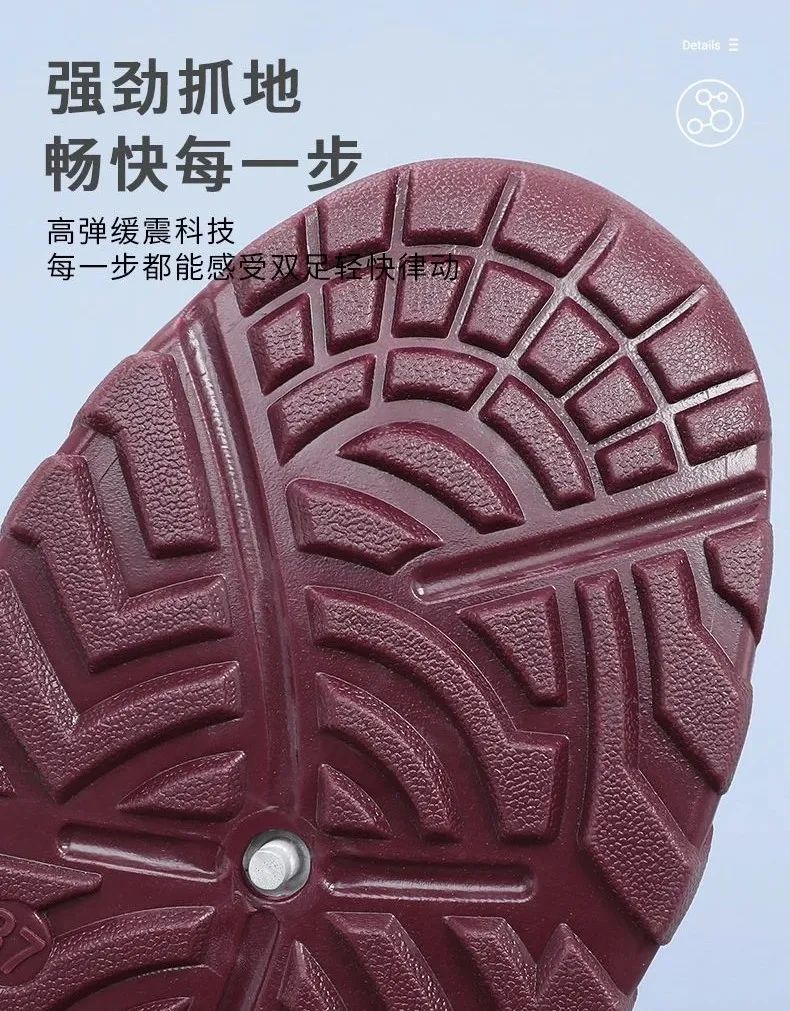 我妈说,跳完几曲广场舞,脚底依然像踩在透气的凉席上,网面微微透着风,不像以前的布鞋,跳完一脱鞋就一股咸鱼味。考虑到老年人更应该注意安全细节,鞋底特意做了强力抓爬纹路,防滑性很好~公园刚下过雨,石板路上湿漉漉的,你穿着这双鞋稳稳踩过青苔,鞋底像吸盘一样牢牢抓着地,不用小心翼翼怕滑倒,还能腾出手帮老伴拎菜篮子。
