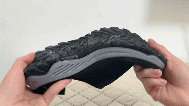 用这种这种材料做的鞋底,随你怎么弯、折、扭,它都会像块橡皮一样快速回弹。