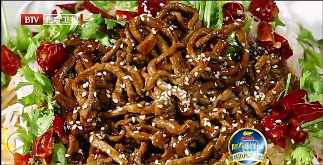 2、秘制肉汁:开火,锅中加入少许油,下瘦肉进行小火慢煸。炒至六成熟,加陈醋、大量的生抽、三勺白糖、少许鸡精、盐、蚝油、老抽调味提香。(注意:1、早点加陈醋的作用:防止肉丝老。2、醋和糖的比例:1:1)