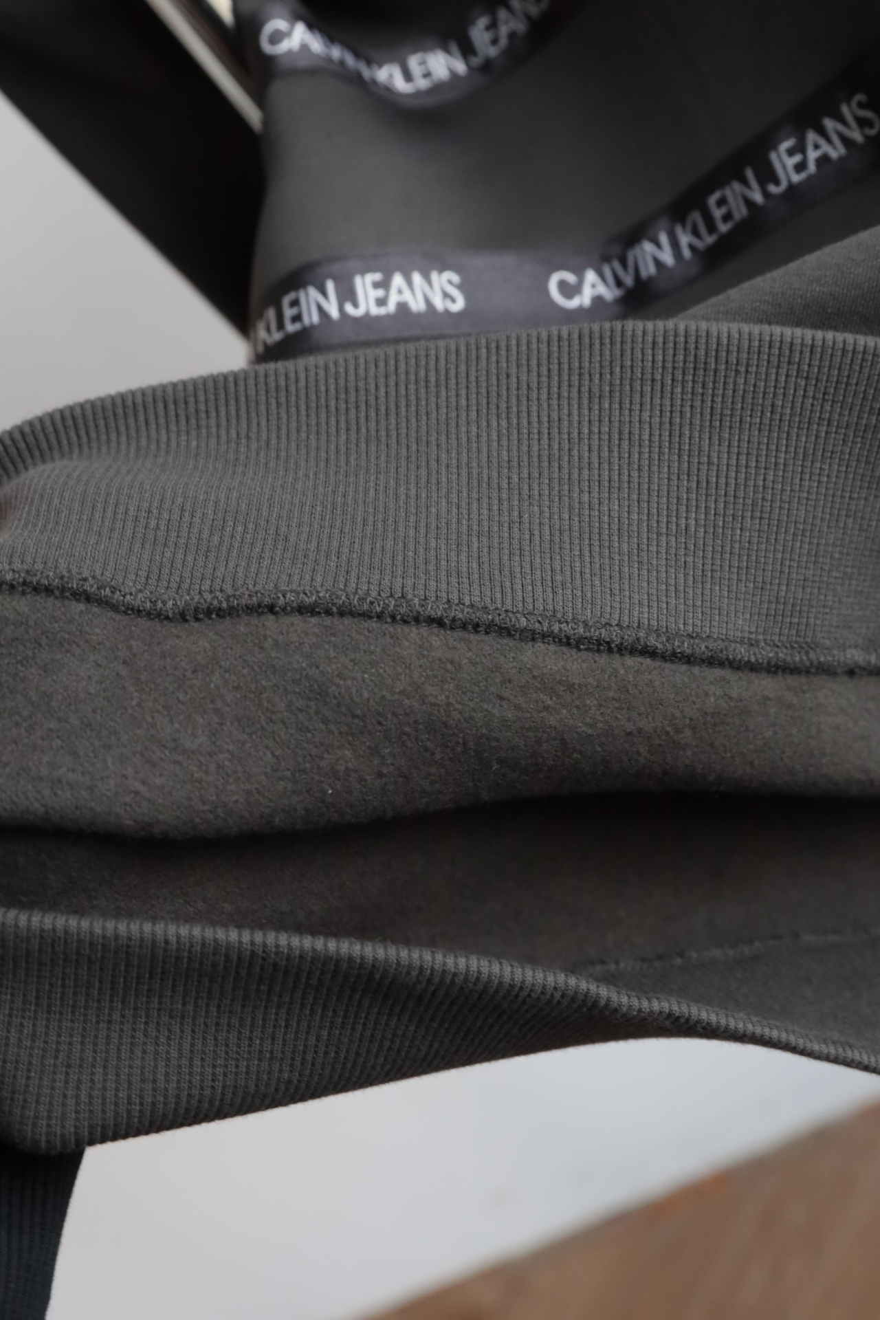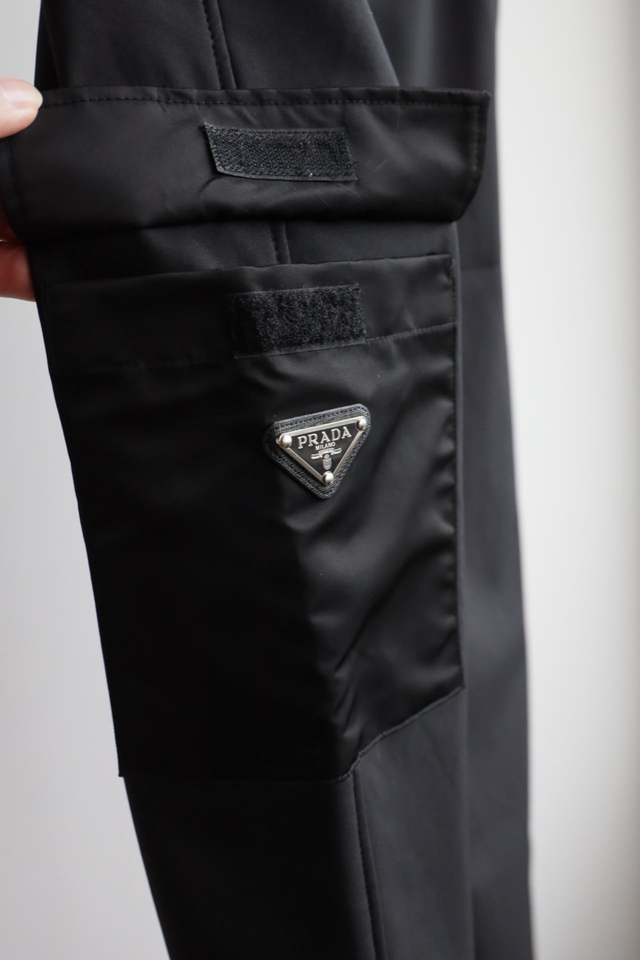收口单侧口袋工装版型,拼接螺纹边+侧袋尼龙贴袋装饰