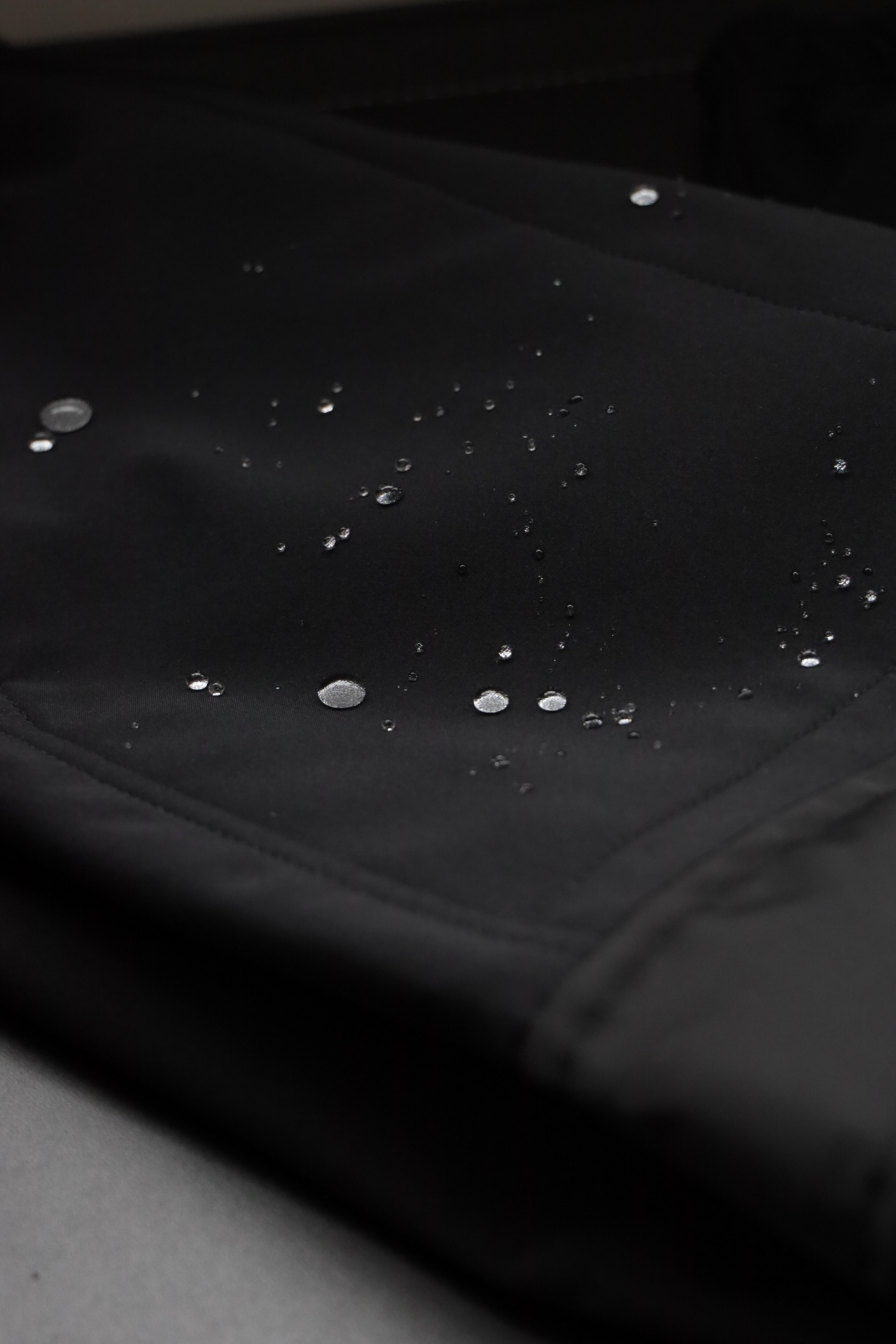 外层是防泼水面料;内里是轻薄透气环保再生面料,夹棉填充是高密度保暖棉
