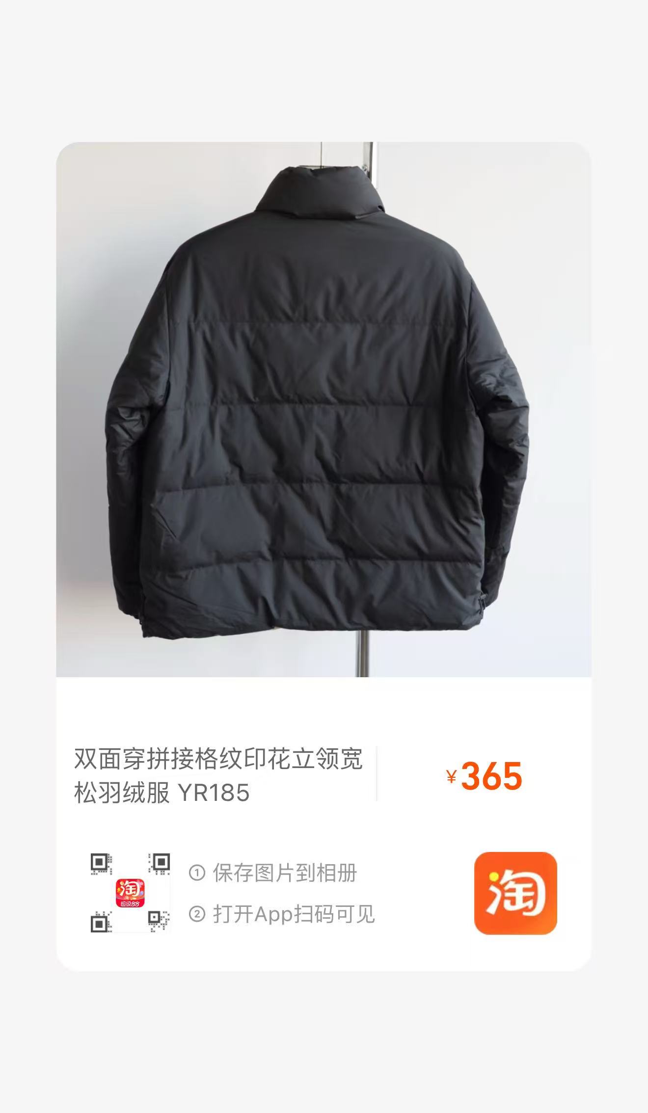 B.B 双面穿拼接格纹印花立领宽松羽绒服