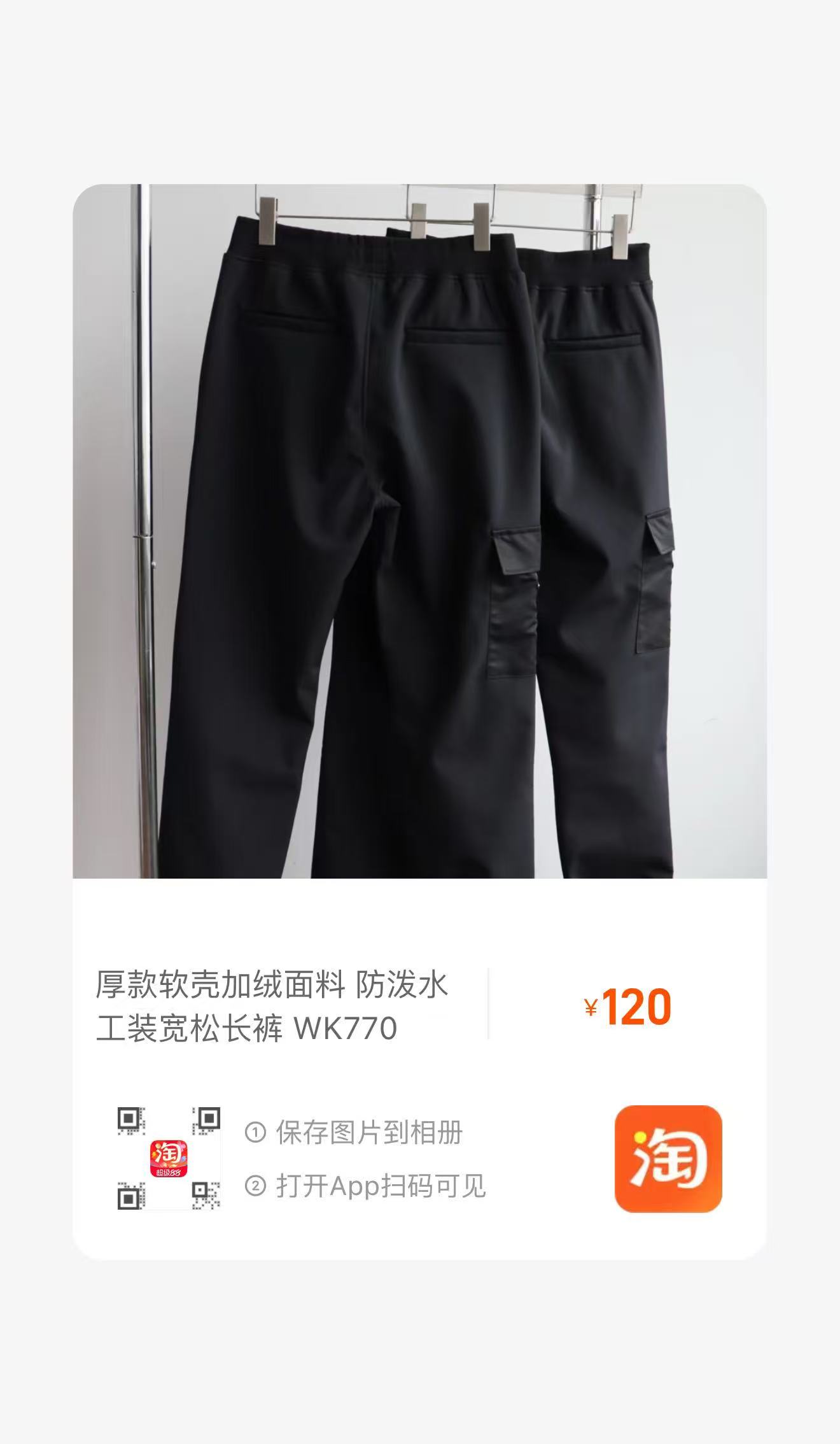 P.R.D 厚款软壳加绒面料 防泼水工装宽松长裤