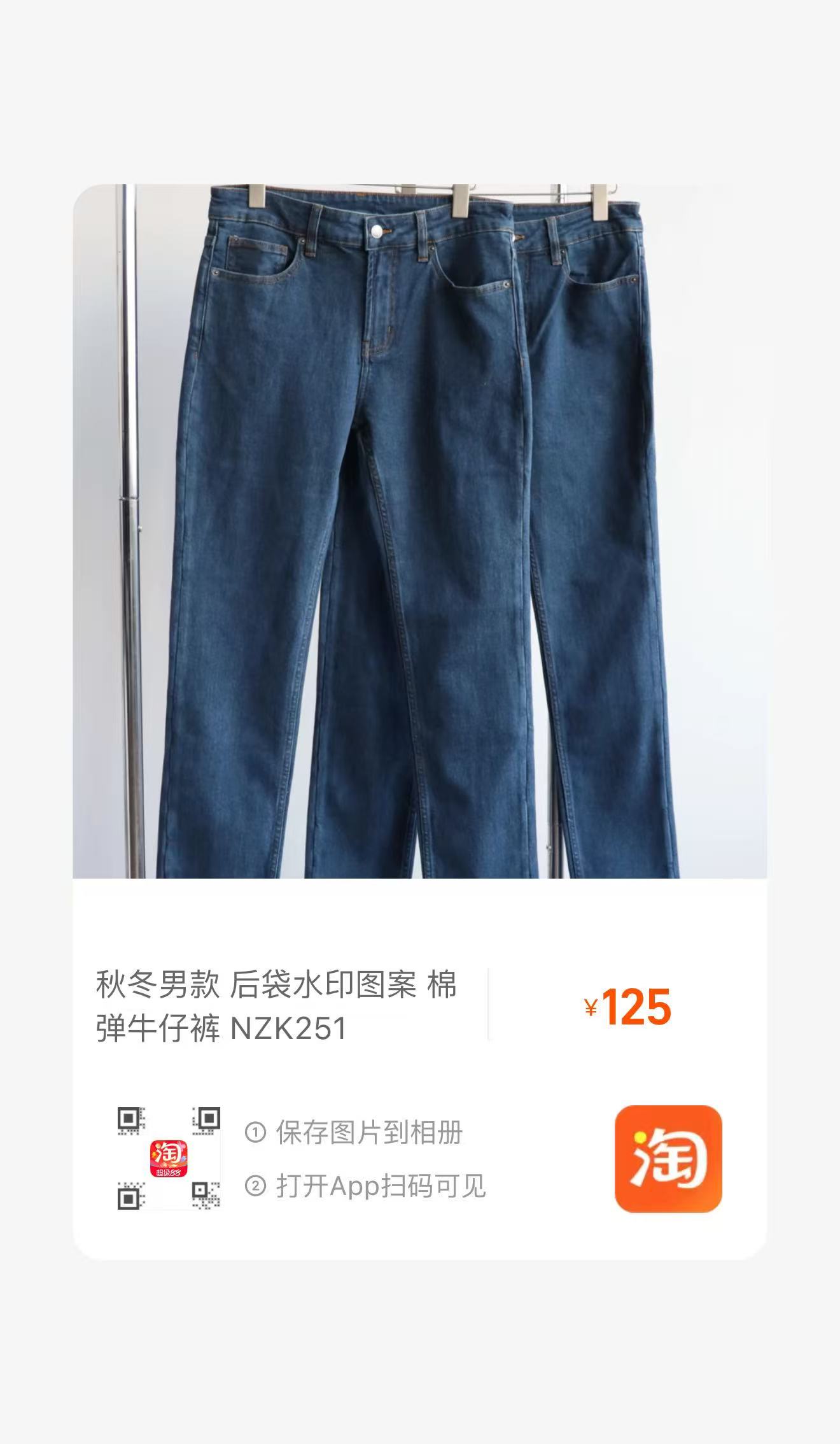 E@秋冬款 后袋水印图案 棉弹牛仔裤
