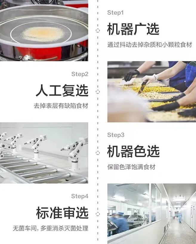 ④标准审选,无菌车间、多重消杀灭菌处理食材。