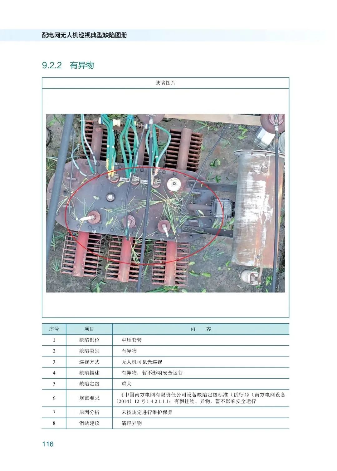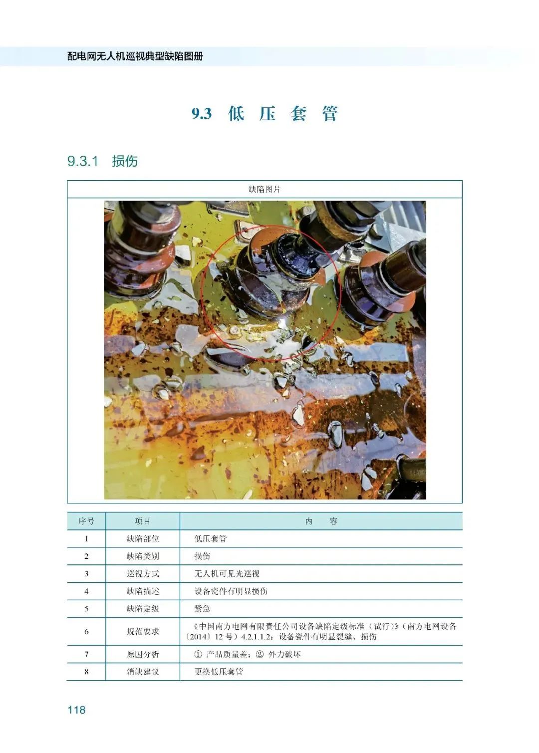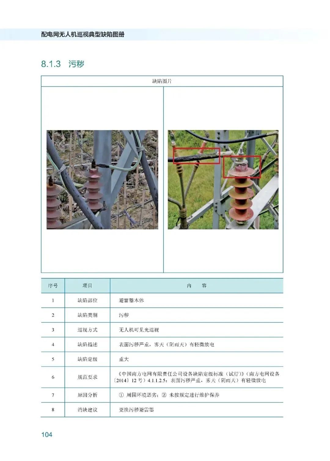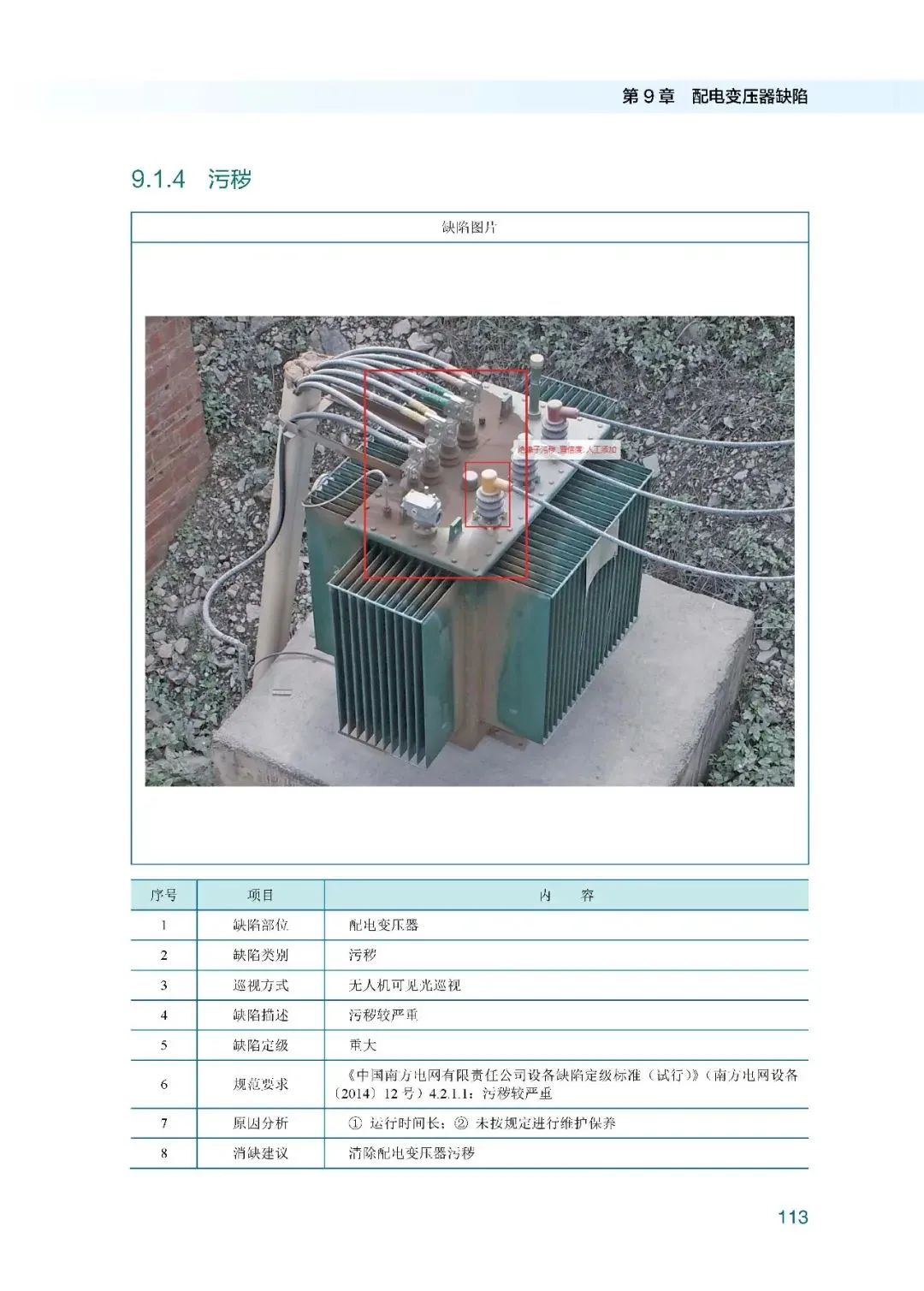 但是,海量的无人机巡视照片不但给阅片人员带来了巨大的工作压力,而且目前国内还缺少能够规范、统一、详细判定配网设备缺陷的标准或参考书籍,缺陷定级也存在阅片人根据自身经验主观判断的情况。配网线路运维工作人员急需一本能够直观指导配网缺陷识别、等级判定、消缺的工具书。