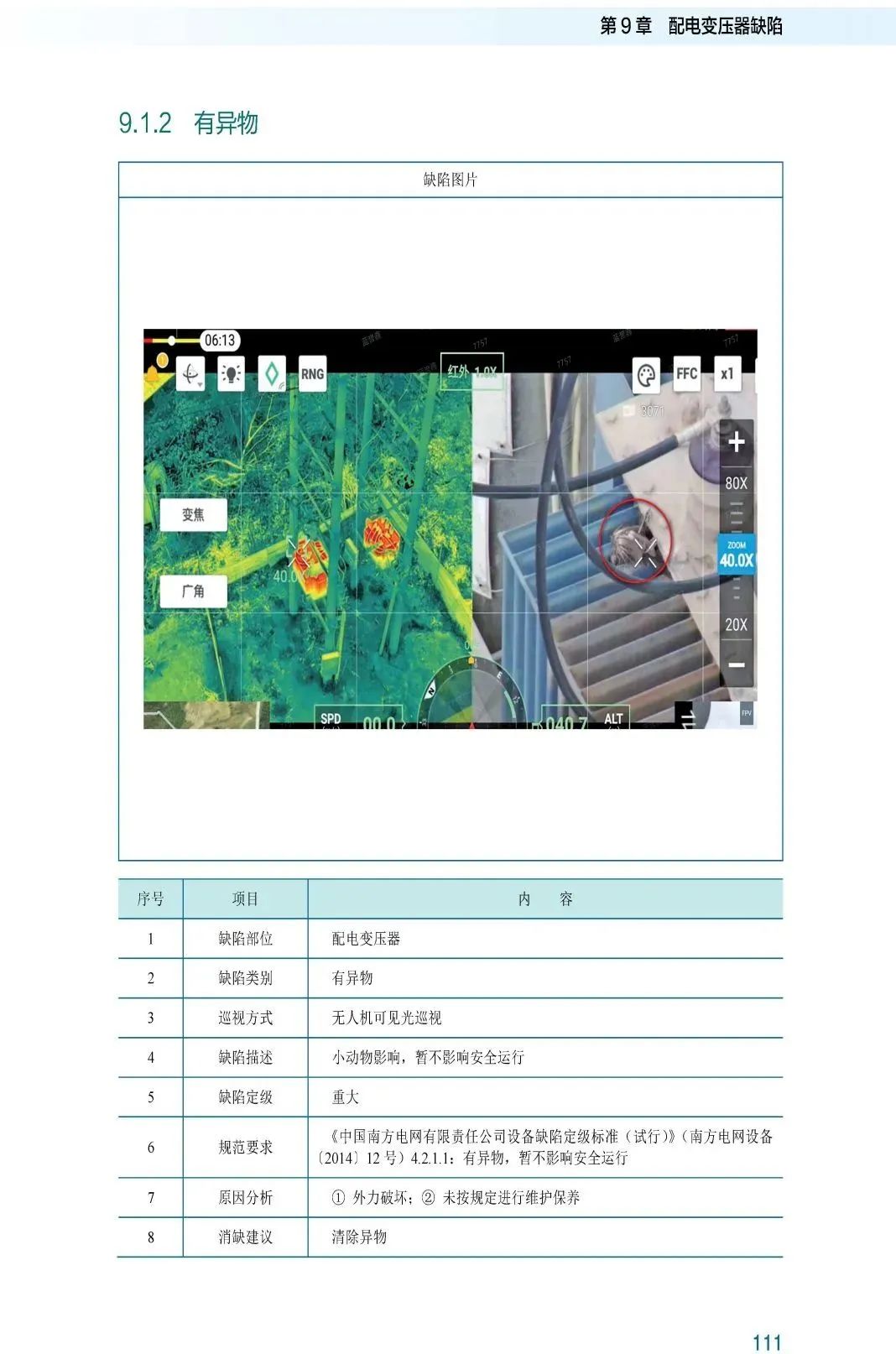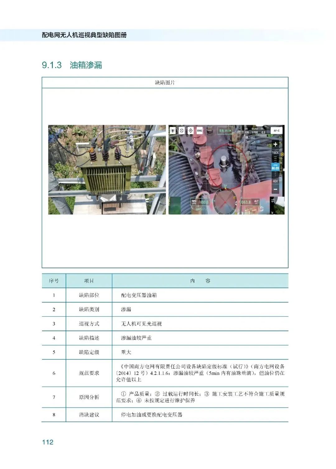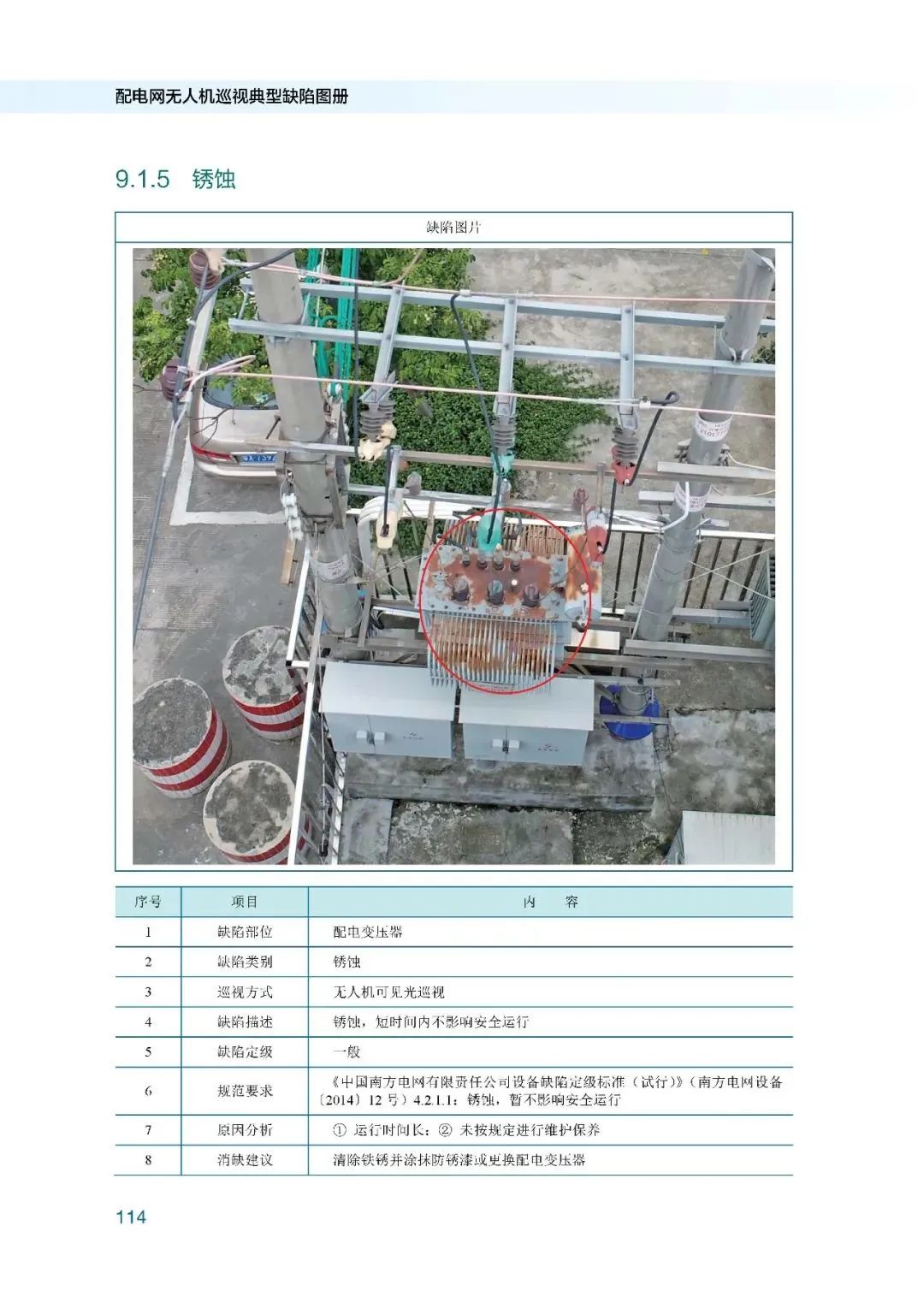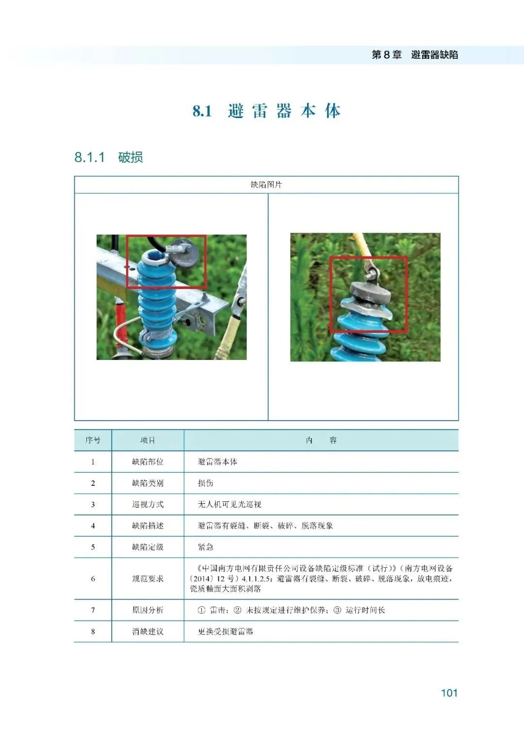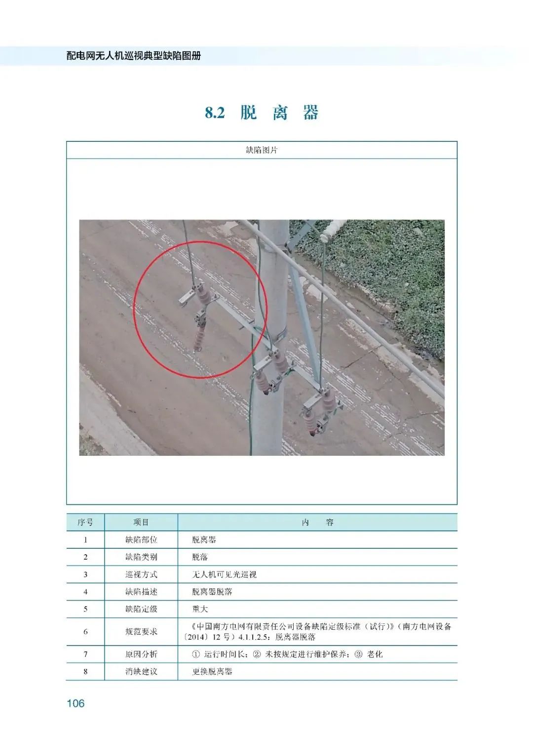 但是,海量的无人机巡视照片不但给阅片人员带来了巨大的工作压力,而且目前国内还缺少能够规范、统一、详细判定配网设备缺陷的标准或参考书籍,缺陷定级也存在阅片人根据自身经验主观判断的情况。配网线路运维工作人员急需一本能够直观指导配网缺陷识别、等级判定、消缺的工具书。