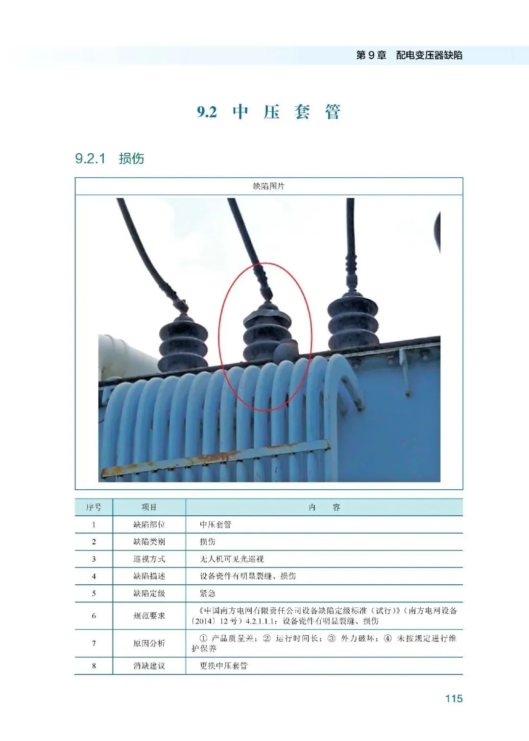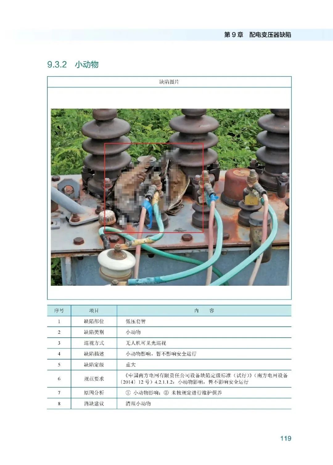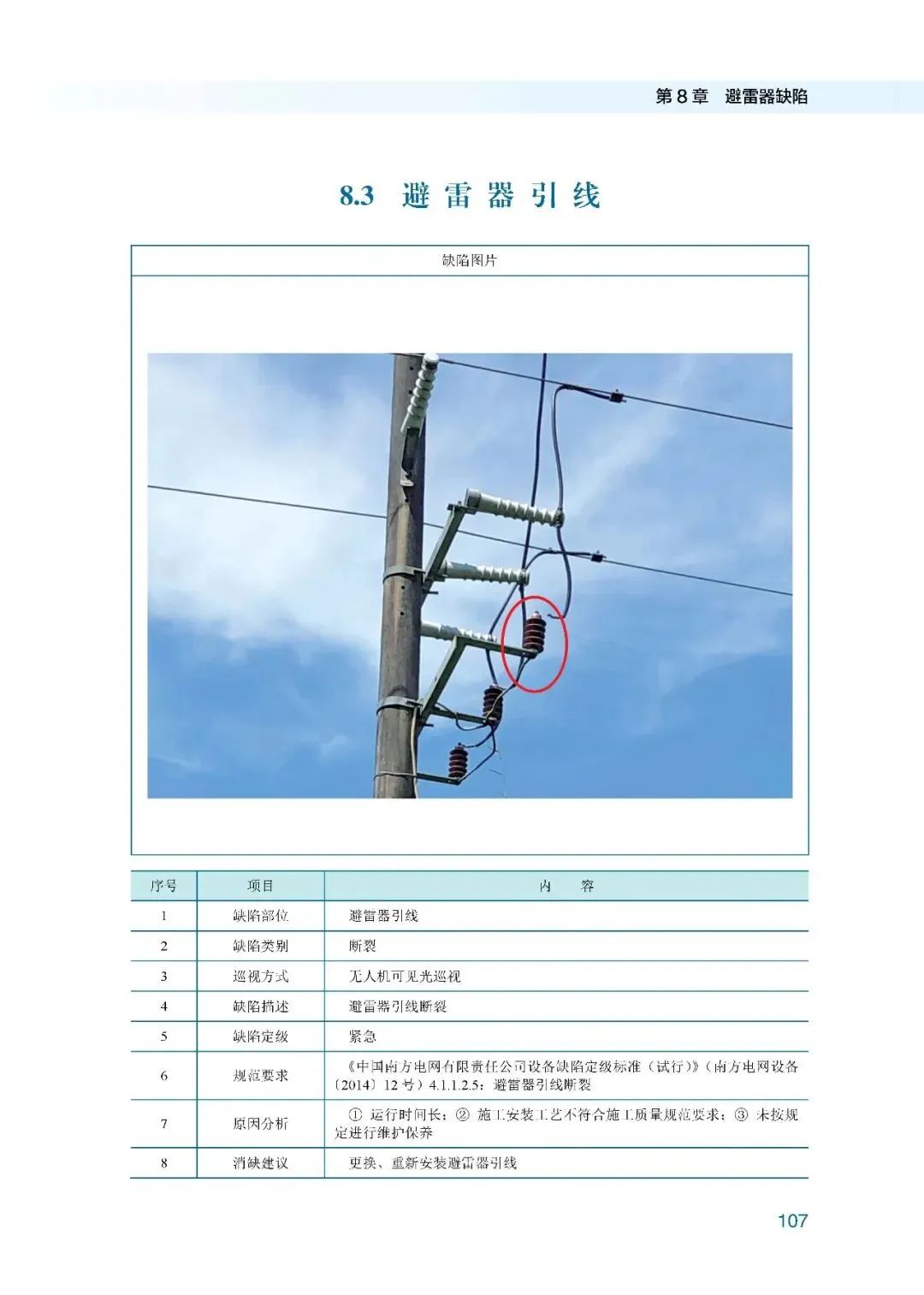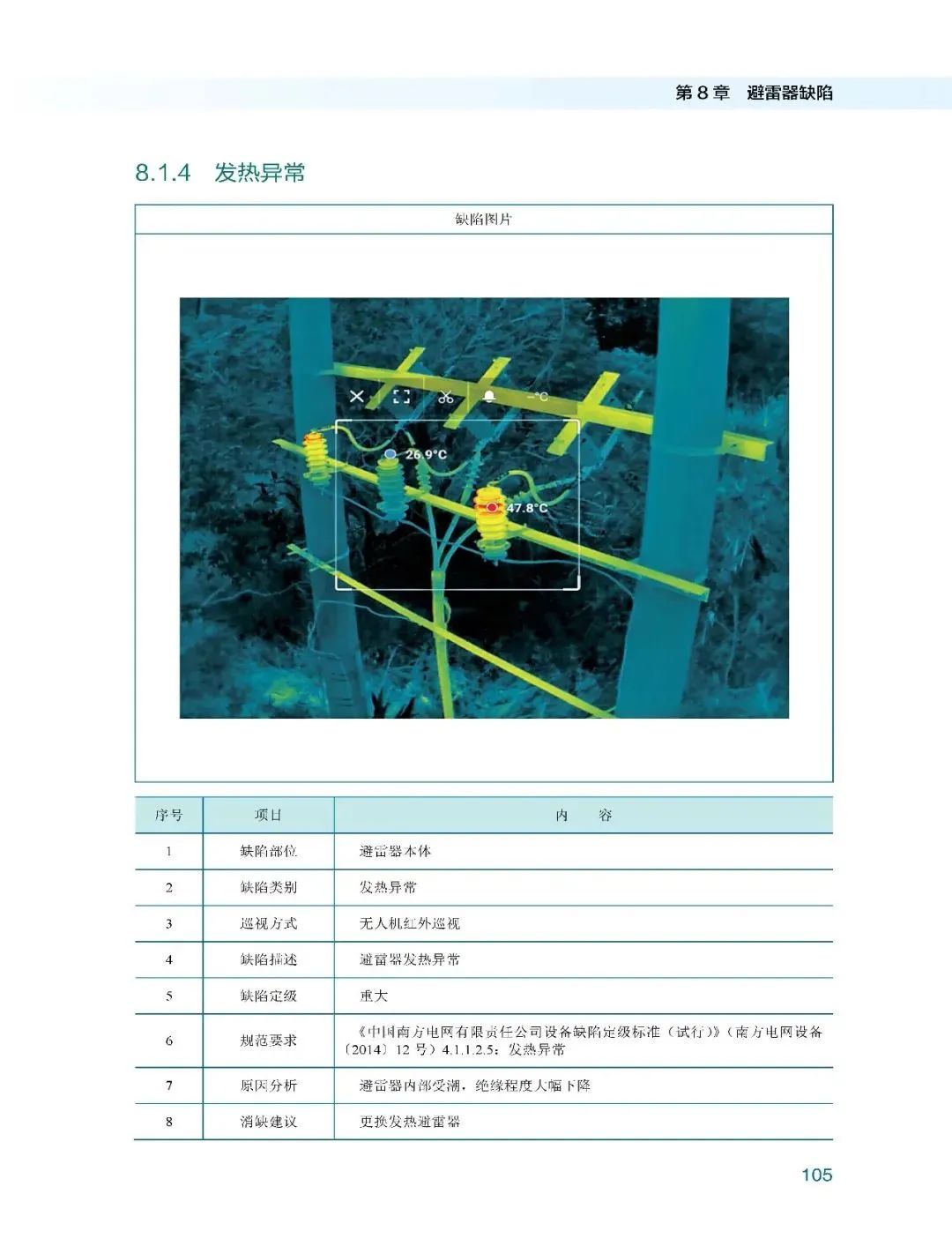 但是,海量的无人机巡视照片不但给阅片人员带来了巨大的工作压力,而且目前国内还缺少能够规范、统一、详细判定配网设备缺陷的标准或参考书籍,缺陷定级也存在阅片人根据自身经验主观判断的情况。配网线路运维工作人员急需一本能够直观指导配网缺陷识别、等级判定、消缺的工具书。