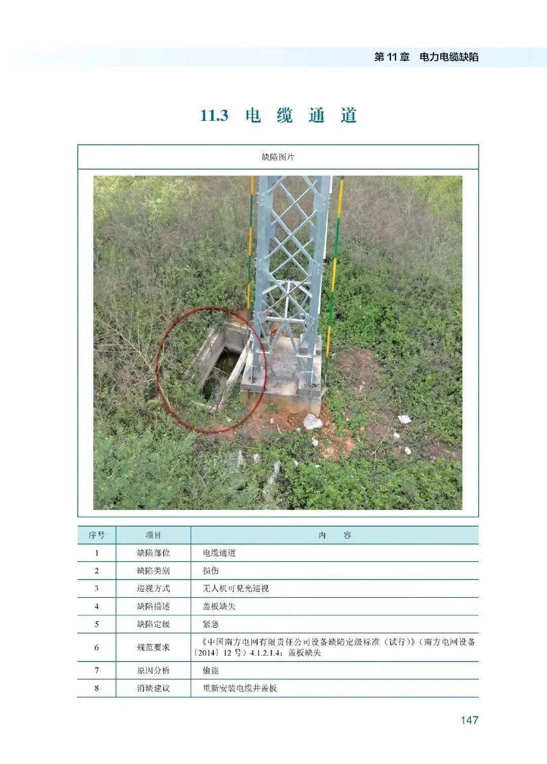 通过无人机的360°全方位视角,对配网架空线路、电缆线路、台区的缺陷进行高清晰拍摄,能够清晰呈现配网线路设备存在的缺陷图像,为本书编制提供极佳的典型缺陷样本。
