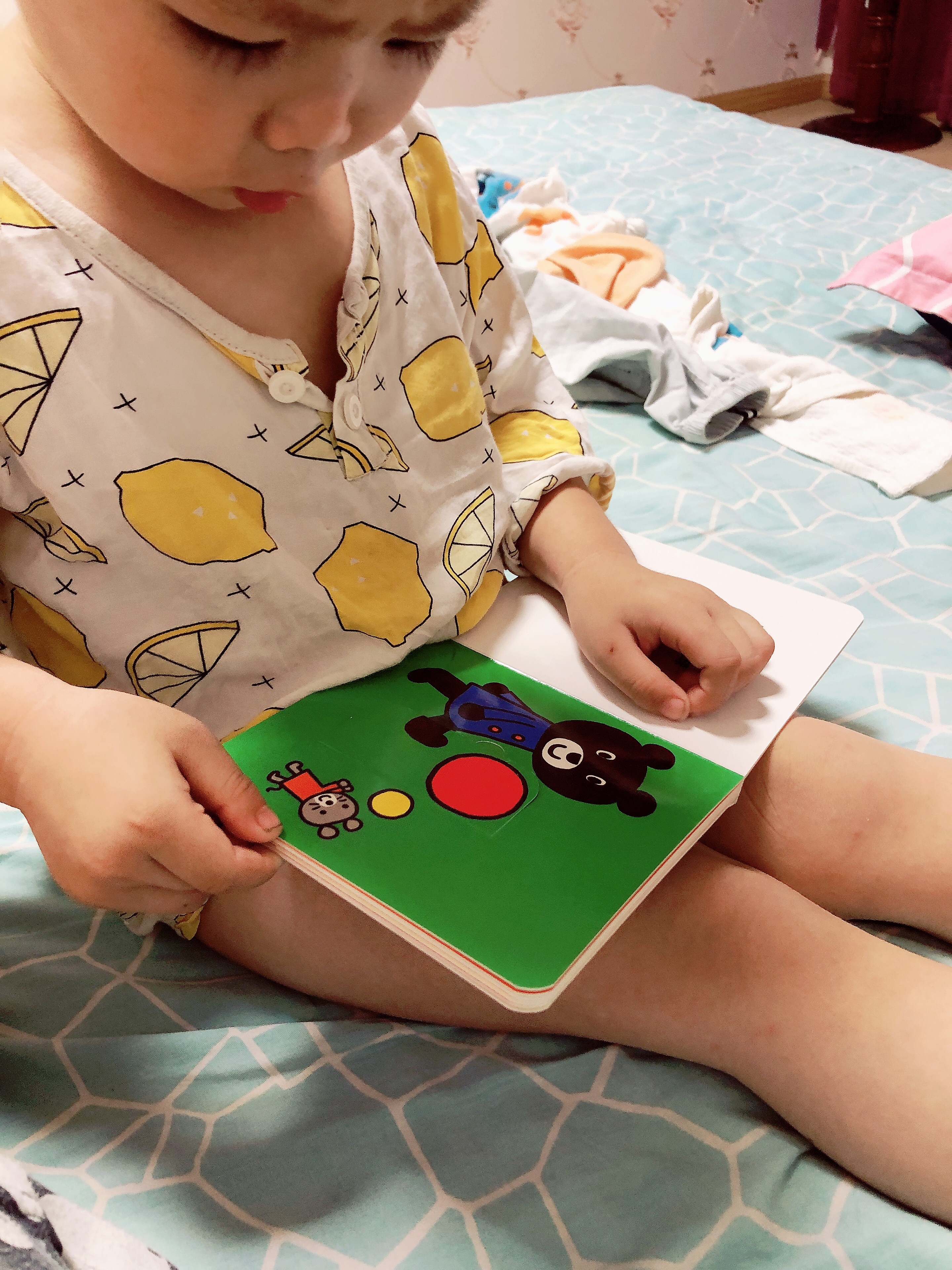 这本书的机关非常精巧,里面有大小蛋糕,球,帽子,玩具,浴巾,包包,凳子,花花,每个类型都是经过精心设计的,从吃的用的玩的穿的各方面都想到了,各种图案形状也都有了,每一页都读着津津有味。