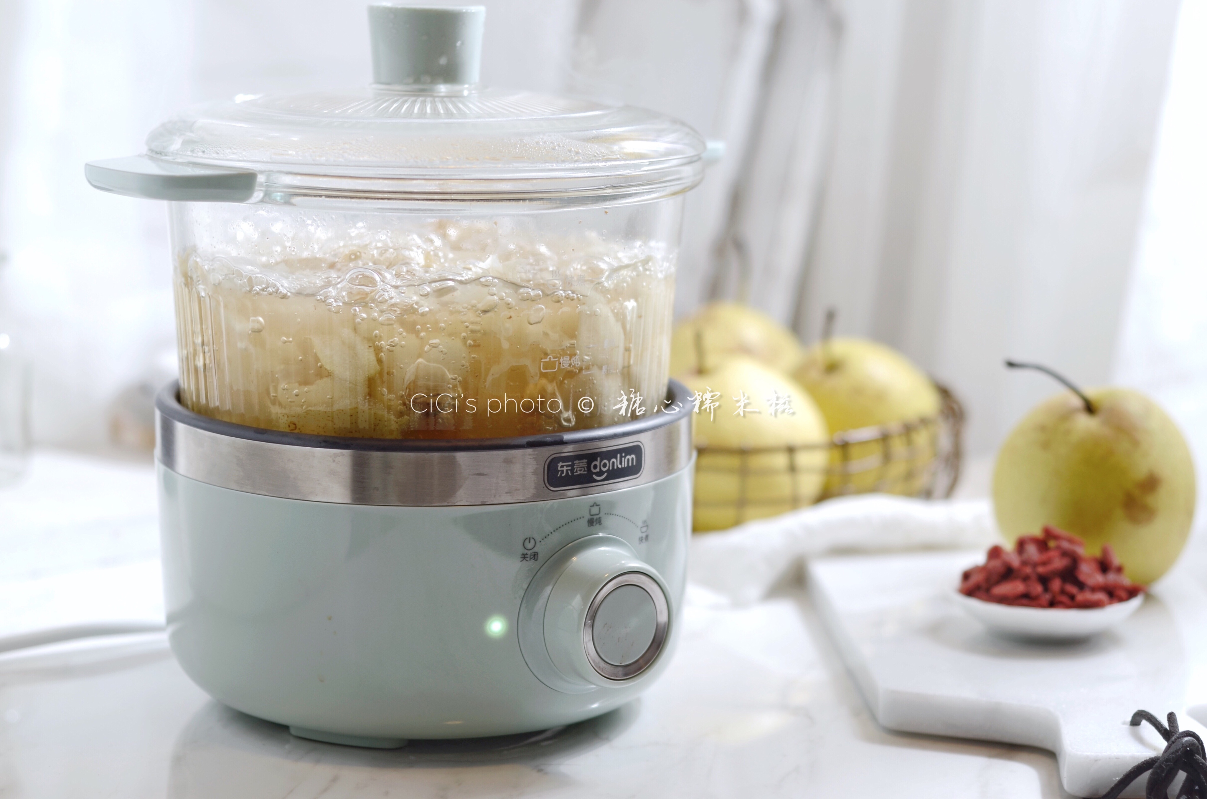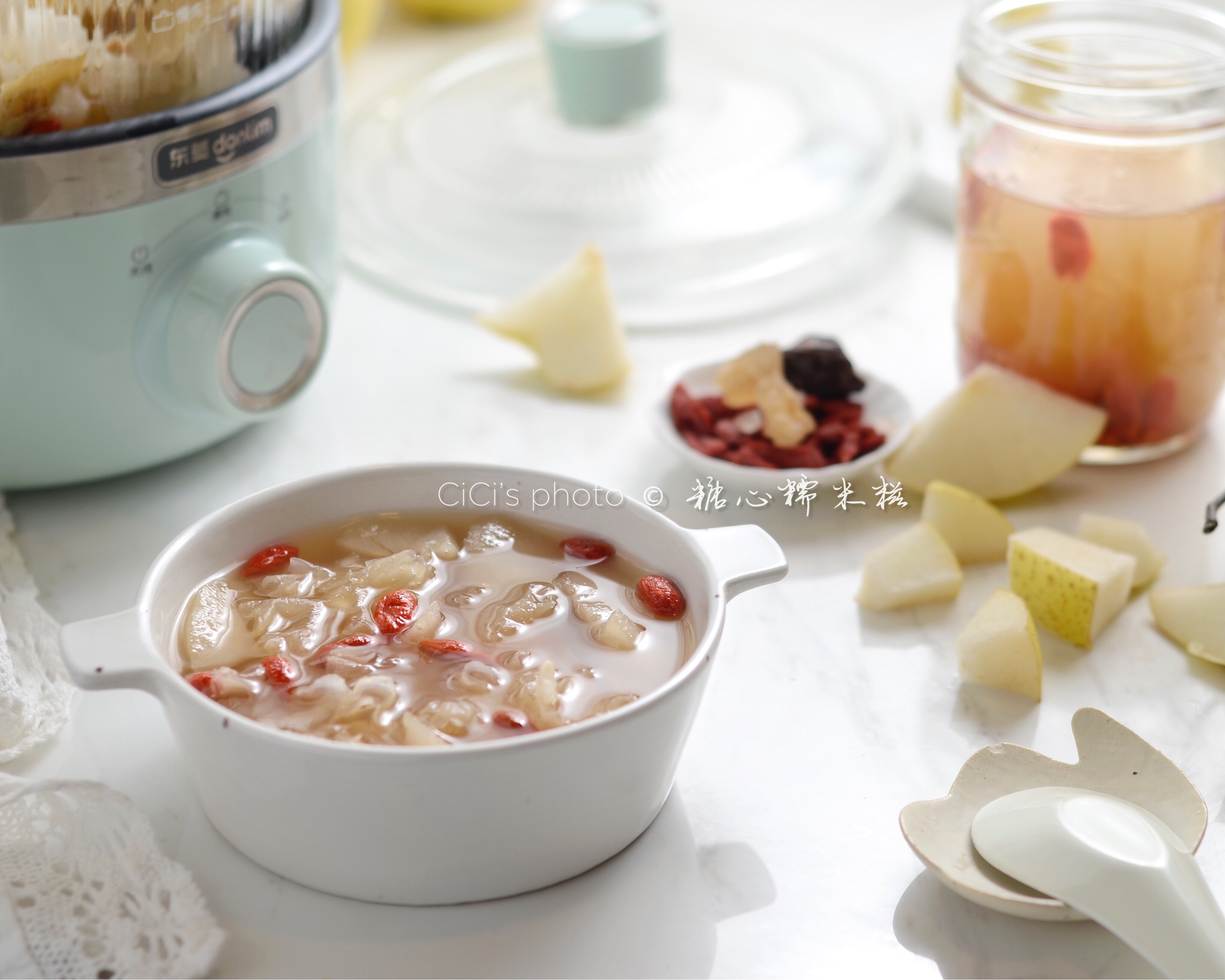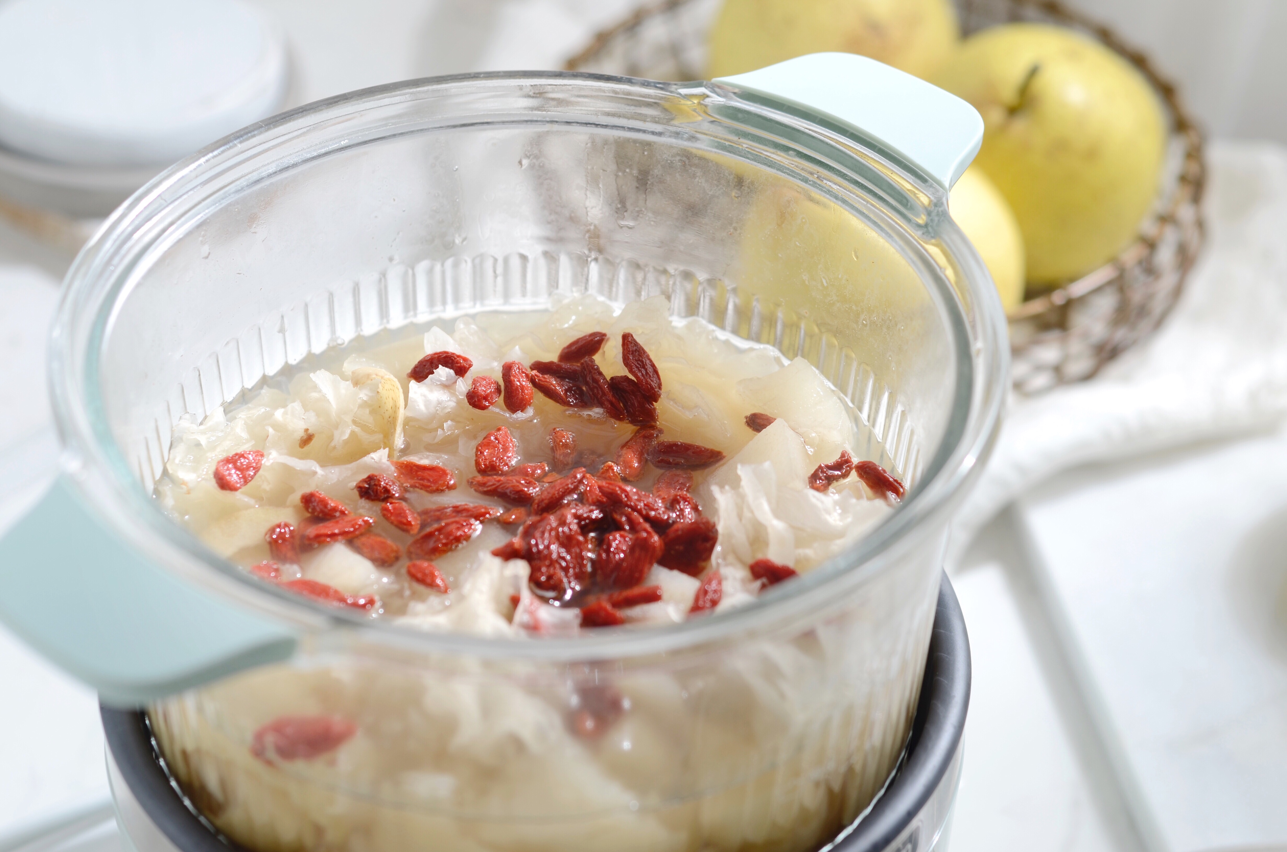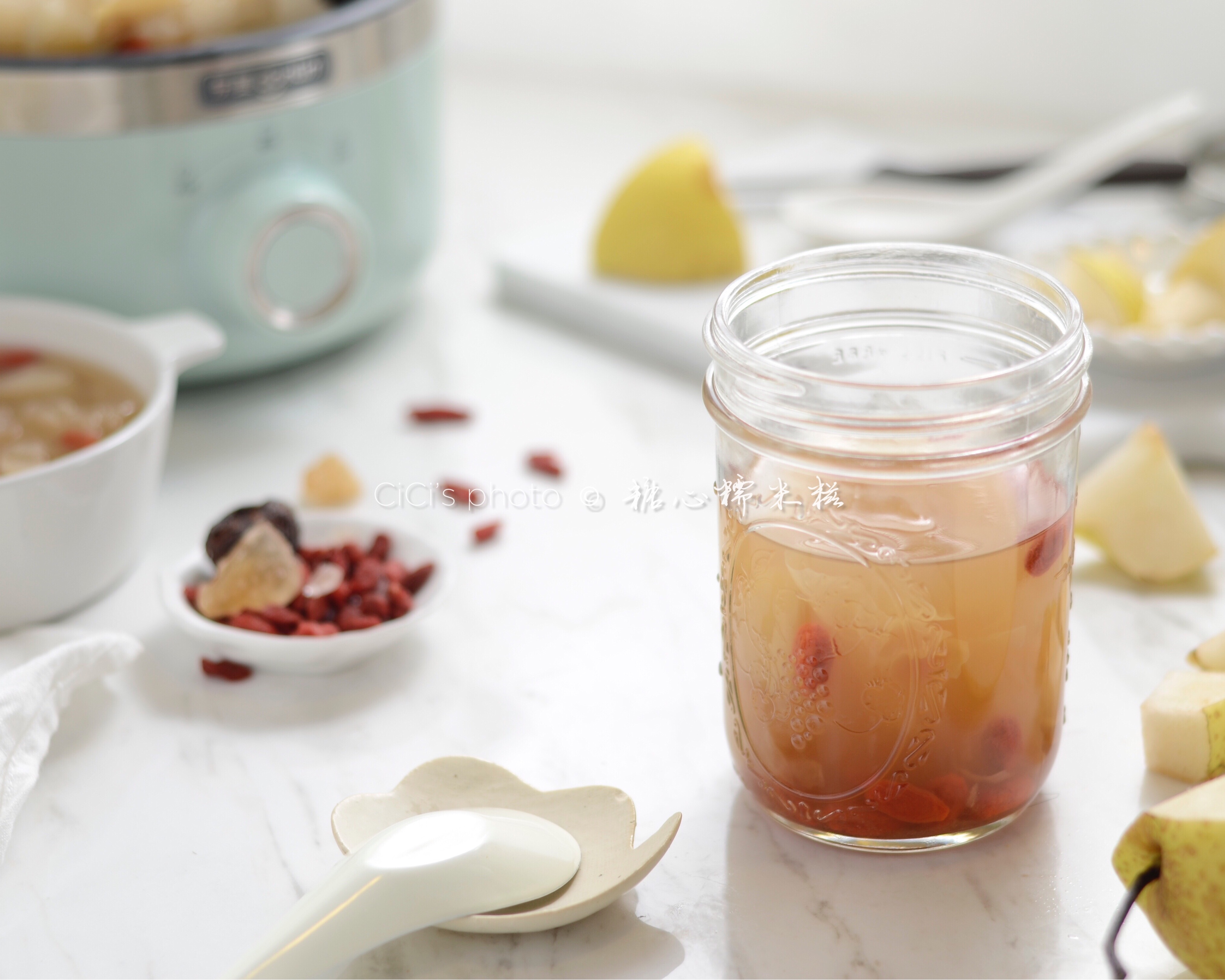 老北京小吊梨汤源自老北京的一道非常出名的汤品,它主要的材料有雪花梨和银耳,辅料有话梅和枸杞,梨本性寒凉,但煮过的梨不仅能润肺还降低了它的寒性。话梅是为了让口味更丰富,小吊梨汤的银耳煮好后是爽口的,主要是让梨汤变得有点浓稠且润滑,注意别加太多,不然就不叫梨汤而是梨羹啦。