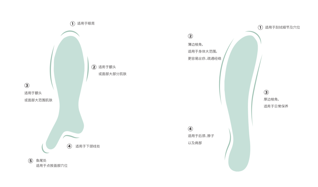 而用于刮痧的“玉石”,更加看中的是“石”的部分,这种石料主要成分是钙镁硅酸盐,用起来性偏凉,更擅长清热,也更适合面部。而砭石的石料,从性味上讲,用起来偏温,更擅长活血。