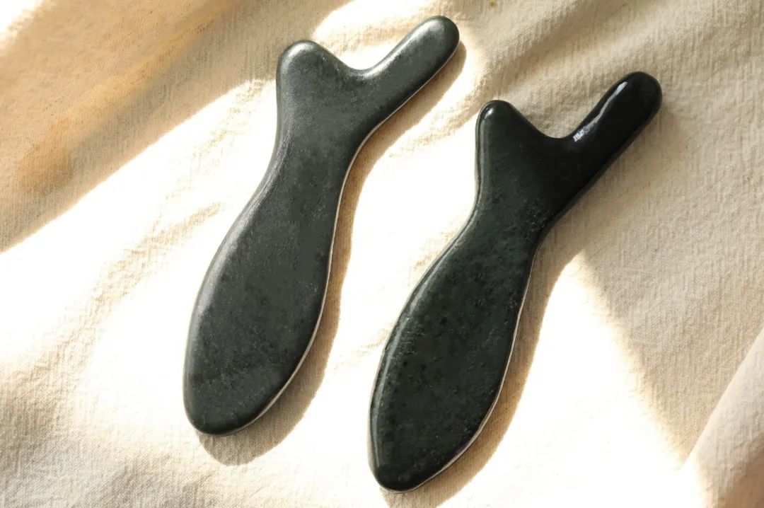 我们摸这两种石头时可以明显感觉,砭石的颗粒感更足,刮身体时可以产生更多摩擦力,让效力更深入。而玉石则明显滑润,摩擦起来没有太多阻力。