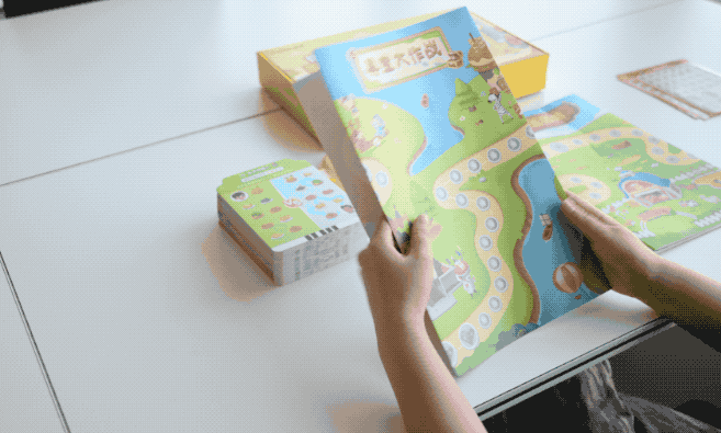 此外,4个主题配有4张超大的全景地图,每完成1张题卡,贴上一枚勋章。在孩子经过观察思考,一路过关闯将,终于贴满一张地图的时候,这个小小的动作显得更有意义。通过这种仪式感,来认可孩子的努力比什么都重要。