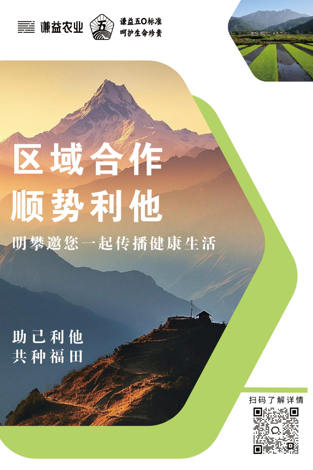 15年来,谦益坚持自然农法种植和纯粹的零添加食品深加工,致力于打造中国放心粮品牌,传播健康生活方式。现有湖北黄梅、蕲春、房县、钟祥,河南淅川,山西长治,黑龙江齐齐哈尔,牡丹江,云南西双版纳,广东增城,浙江杭州等全国7省14个生态基地,总面积逾万亩。