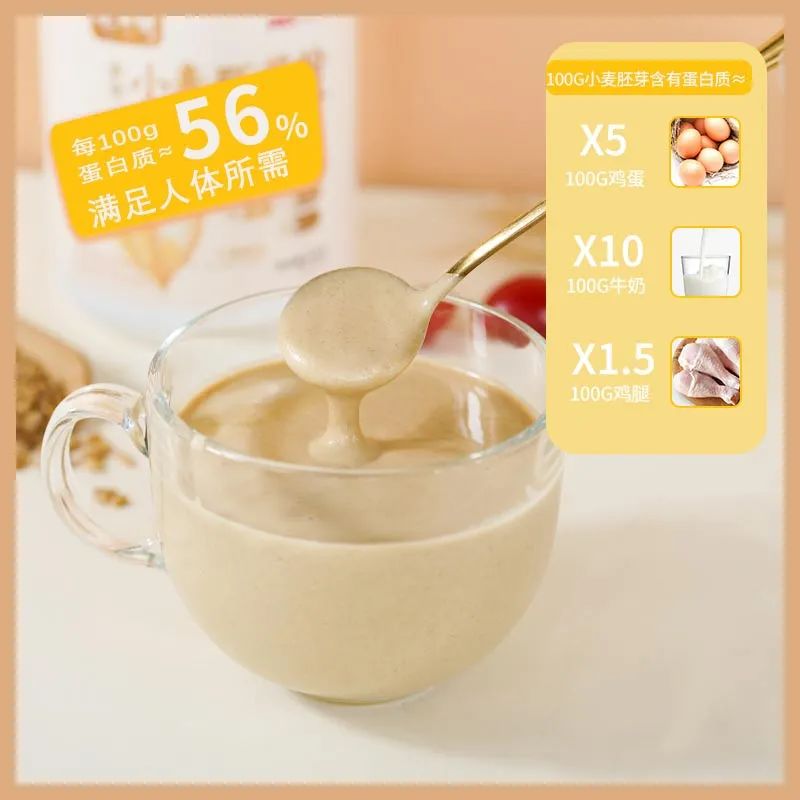 谷物高蛋白好吸收,这款小麦胚芽中每100g含33.6g蛋白质,每100g≈5个水煮蛋或10杯牛奶,不少健身爱好者更是把它当成了蛋白质补充品。
