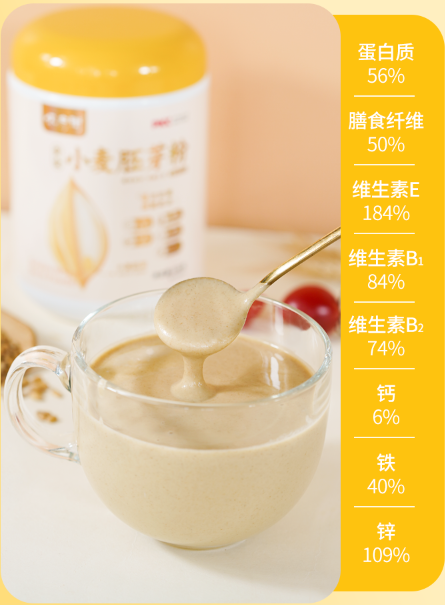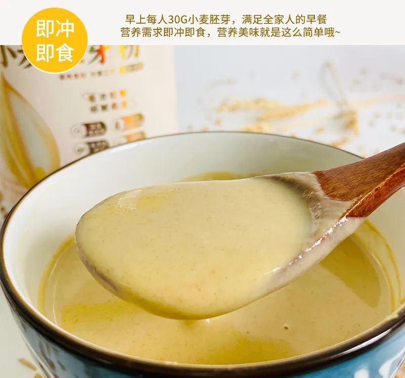 小麦胚芽即冲即食,一口补充多种维生素、矿物质、氨基酸,补充身体能量,越喝越健康。