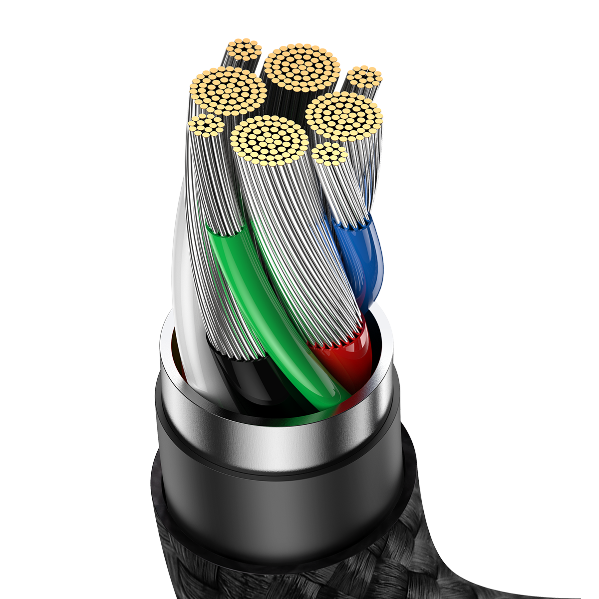 数据线内部有数据传输线,内部结构有四根线,红线是VCC电源线,白线和绿线是Date数据线,黑线是GND接地线