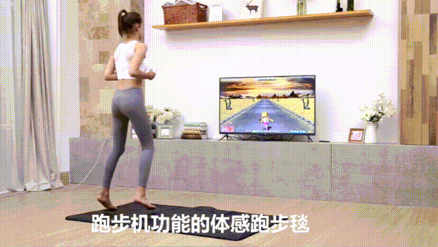 比如跑步,电视是跑步的画面,人在毯面上跑!毯面感应脚步的步伐,步伐越快跑步越快。