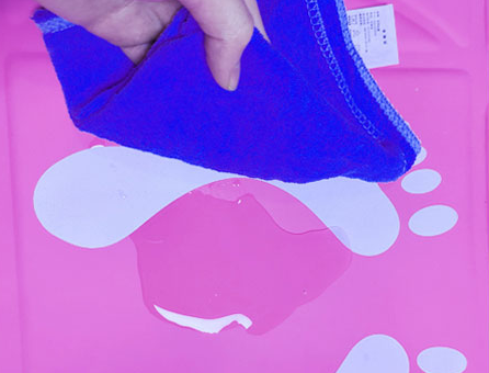 清理也更方便,直接用湿抹布擦拭干净,擦拭后晾干就好了。(注意:不能水洗,车缝线容易进水,进水后会影响毯面里面的导电膜,影响使用体验。)