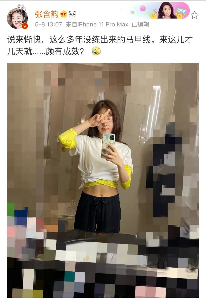 无独有偶,张含韵在节目中,练舞几天练成了多年不见的马甲线!