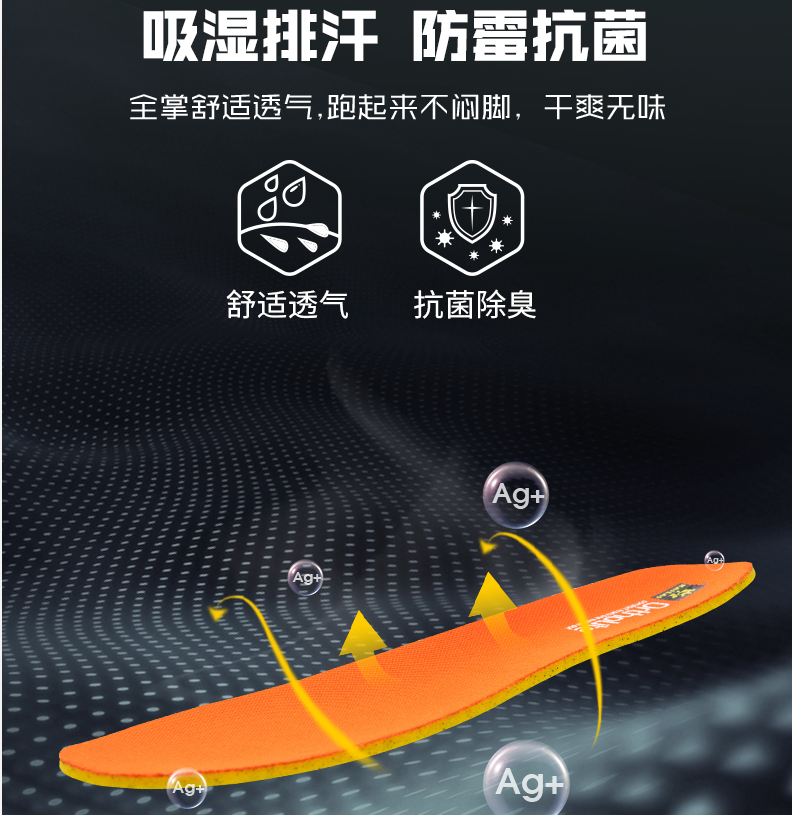 采用聚氨酯高密度排汗抗菌鞋垫,鞋垫厚度约为3mm。在穿着运动中起到一定缓冲作用,包裹性也很好。不会有滑动现象。