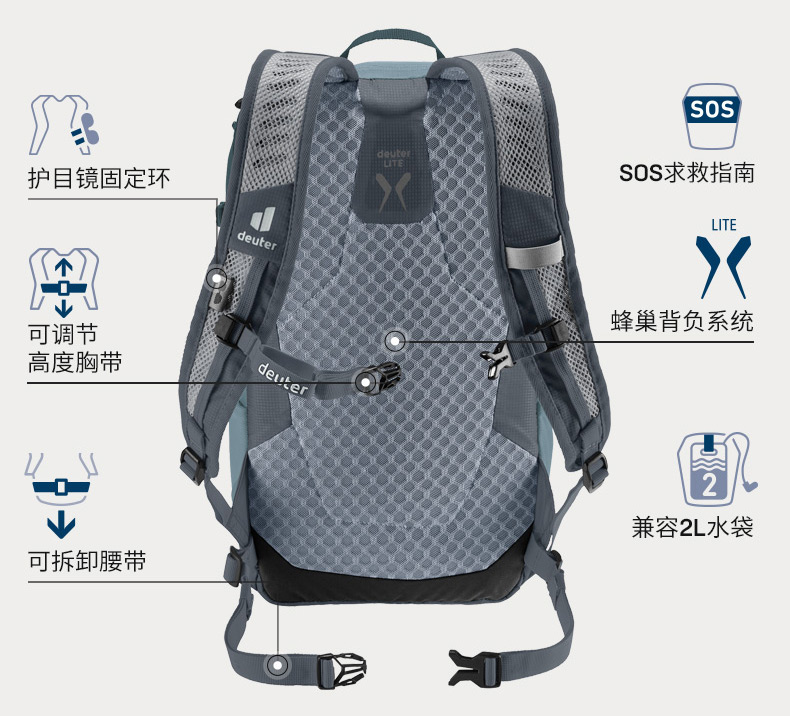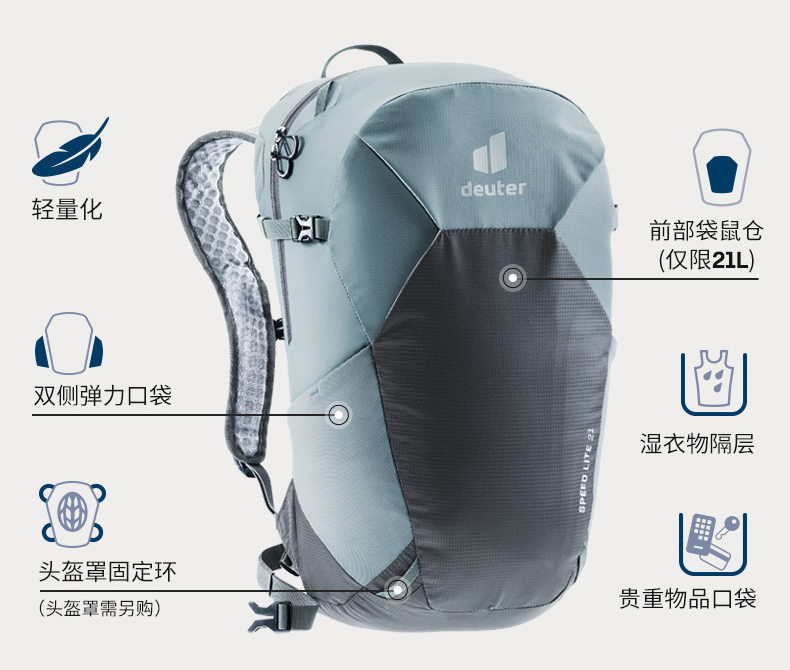 速特(Speed lite)是多特deuter一款轻量级的中短线徒步背包,主打“超轻状态下的行动自如”。合理的功能分区和羽量级的自重,令速特不仅适合短途徒步。