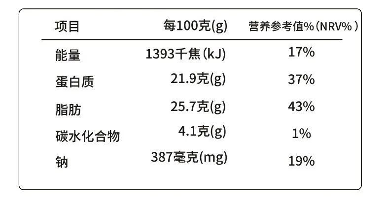 每100克含有21.9克的蛋白质、25.7克的脂肪、4.1克的碳水,很适合低碳生酮饮食的人来吃。