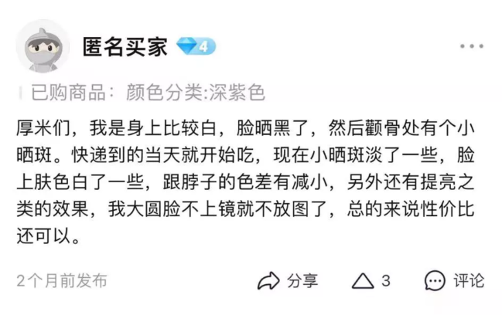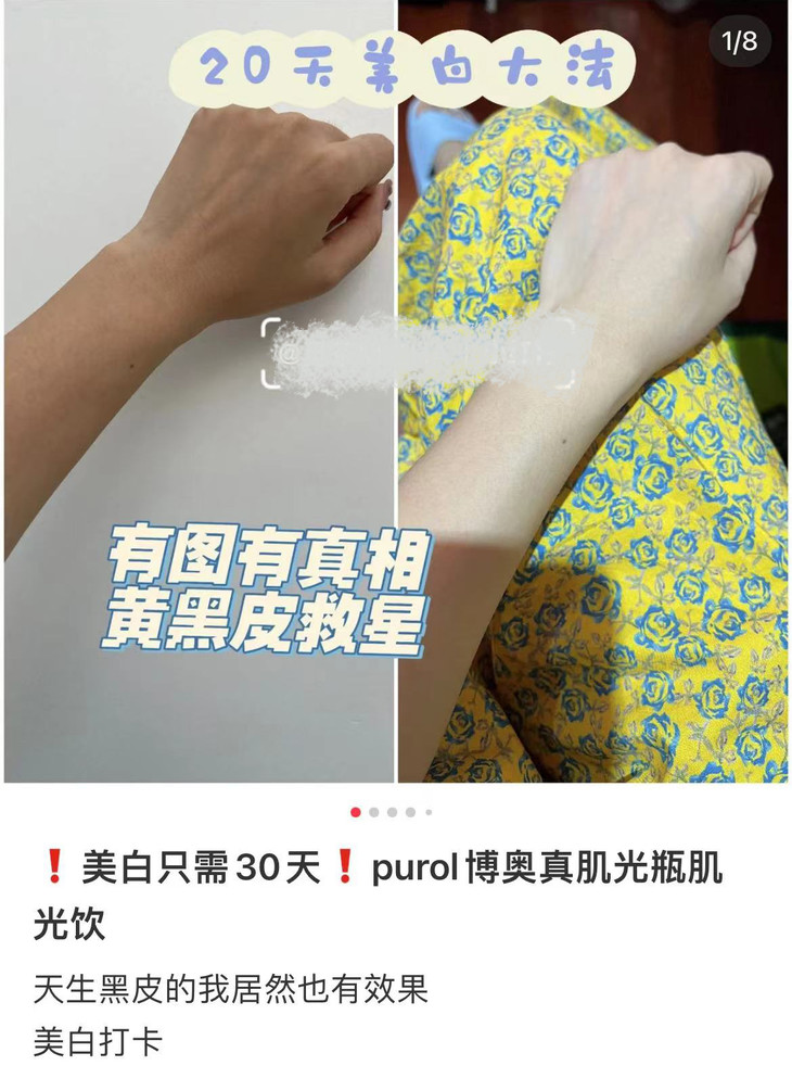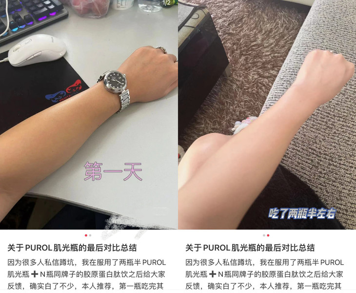 不管你是天生黄黑皮,还是在夏天被晒黑,PUROL 肌光瓶都能通过它特殊的工艺全方位、多角度的让你的皮肤变白变透,这点很多素人在网上都发过反馈。