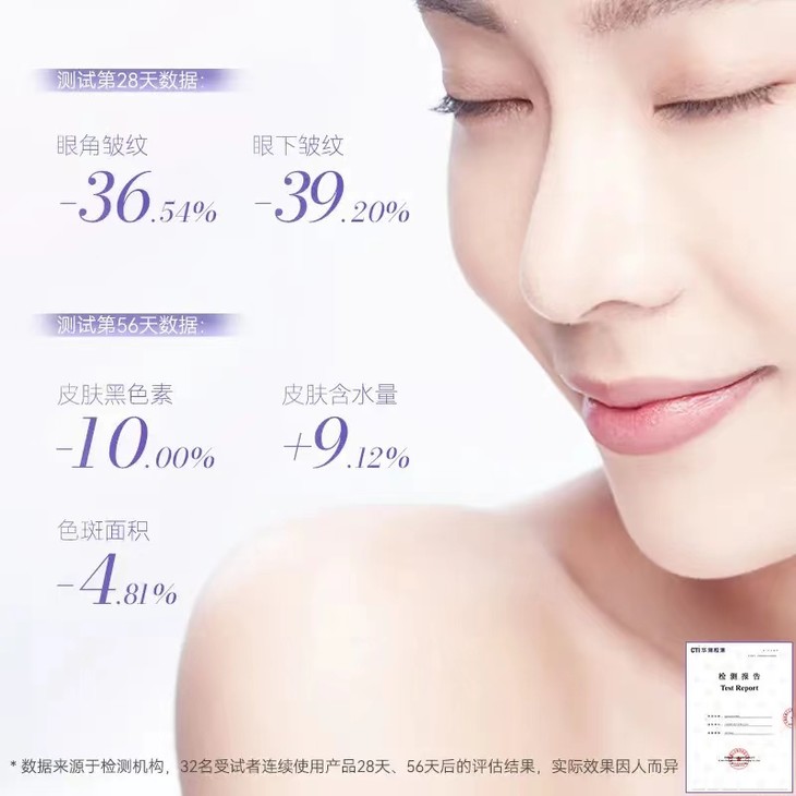 以上的效果都是有第三方实验数据支撑的,加上它独有的专利成分,干预炎症的同时还能防止代谢衰老,让皮肤在变白、变透的同时变得更显年轻。