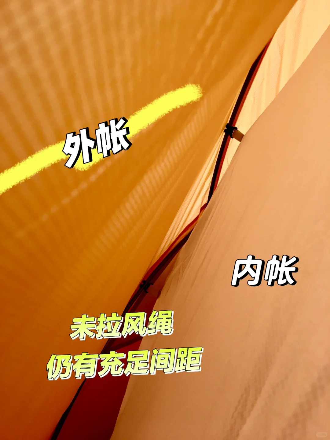 空间大小:内部尺寸为210×130×110cm,一个人睡宽敞自在,两个人睡也不会觉得拥挤,还能放些装备 。