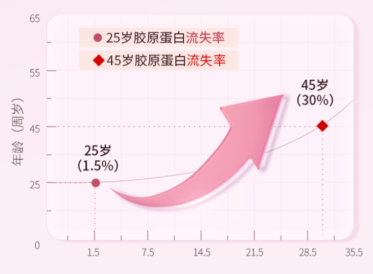 哪怕你什么都不做,胶原蛋白也会流失。研究表明,亚洲人30岁左右开始出现断崖式胶原流失,除了年龄增长带来的自然老化之外,紫外线损伤、环境恶化、无规律作息等等都会加速胶原蛋白流失。