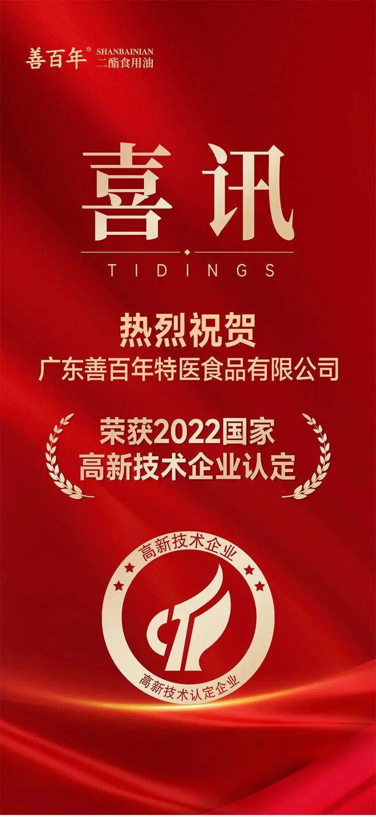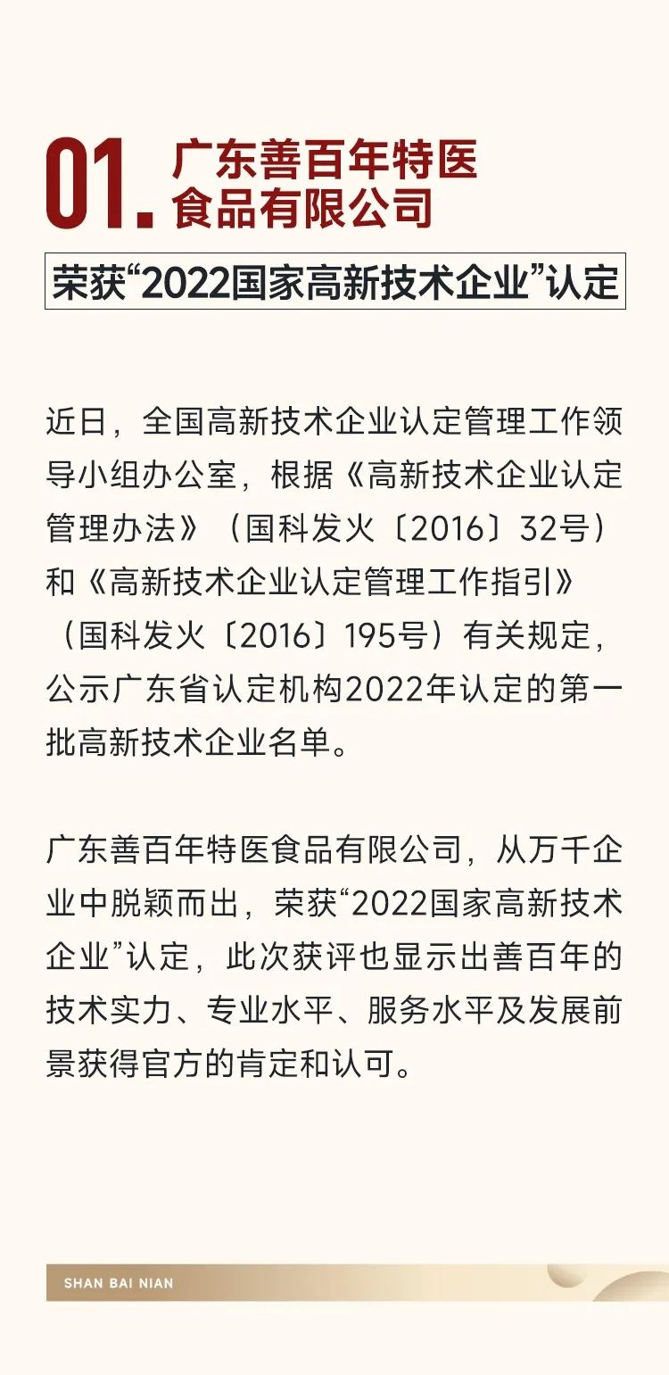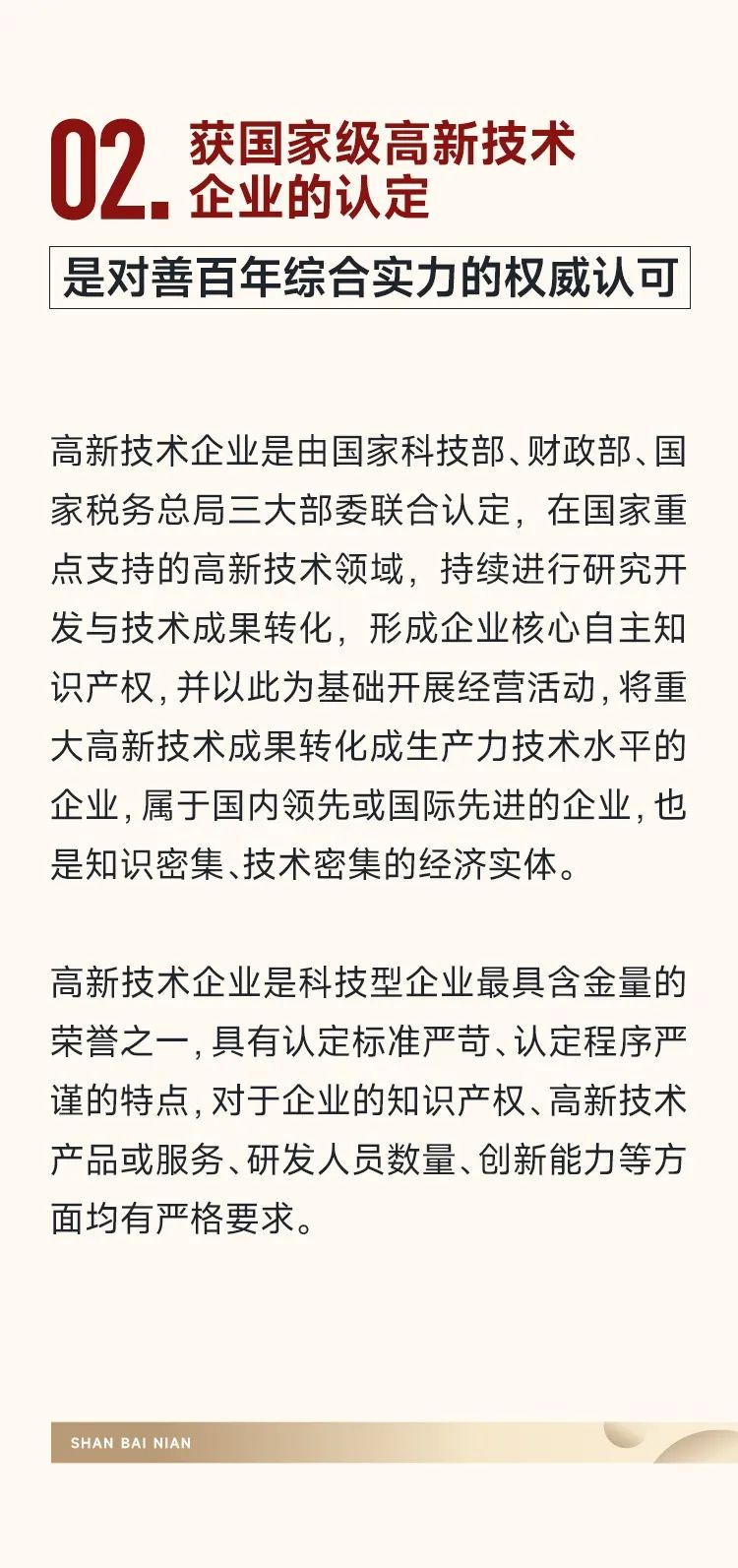 喜讯!善百年荣获“2022国家高新技术企业”认定!