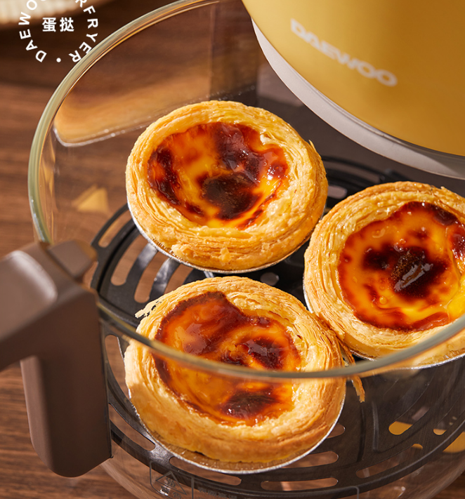 用热空气替代原本煎锅里的热油,热风在密闭的锅内形成急速360°循环加热食物,使得食物能快速、均匀地变熟,表面变得金黄酥脆,达到煎炸的效果。