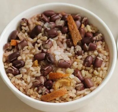 陈皮几片、红豆1勺、粳米1勺、糙米1勺