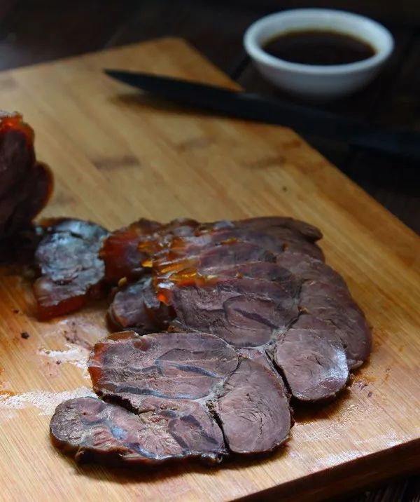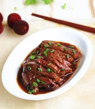 7、用筷子可以扎透腱子时,转大火收汁至稍微浓稠时关火,将肉和汤倒入容器加盖入冷的地方浸泡12小时以上味道会更佳。