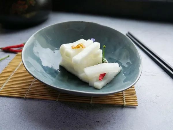 2、 切成条状或片状都可,加入三勺盐,把萝卜杀出水分和涩味,大约二三十分钟,时间长点也没关系。