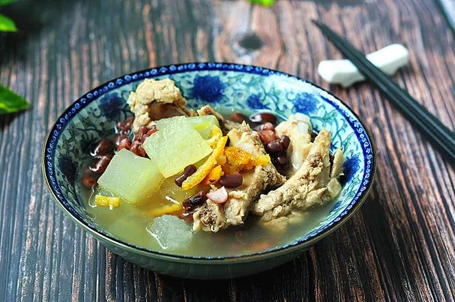 排骨两根、冬瓜一块、红豆一把、陈皮一撮