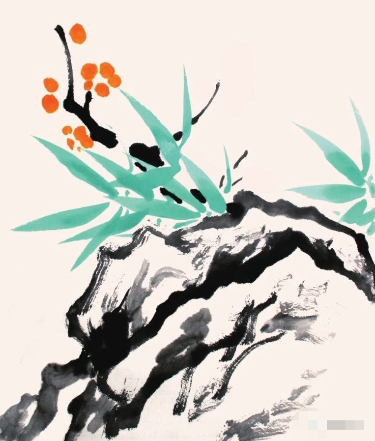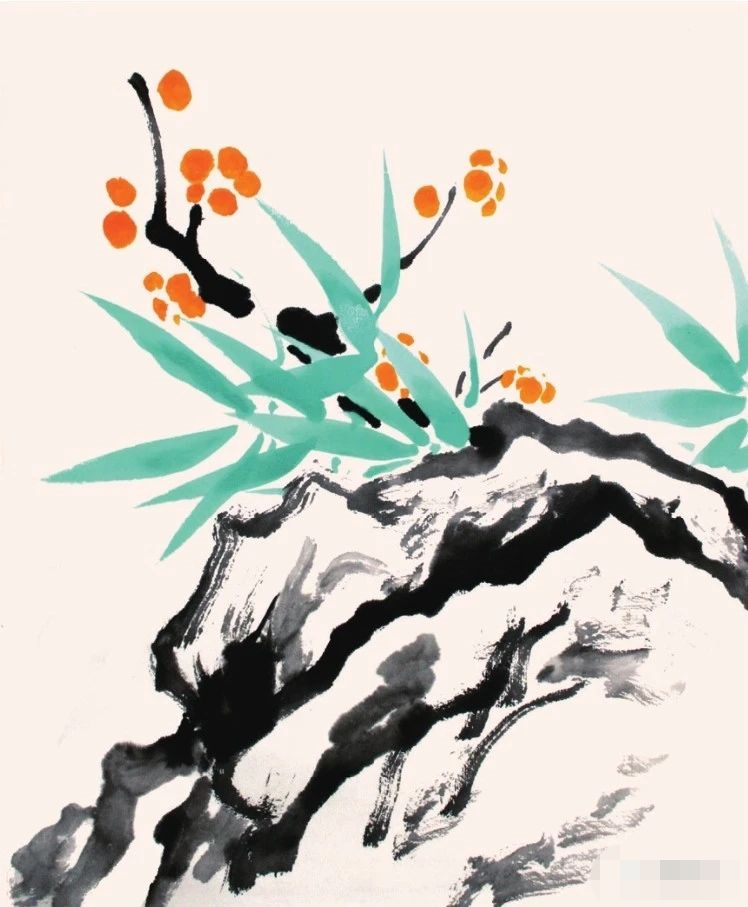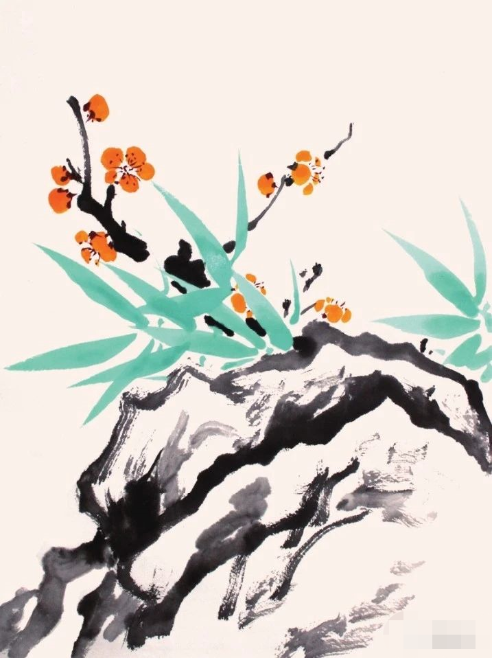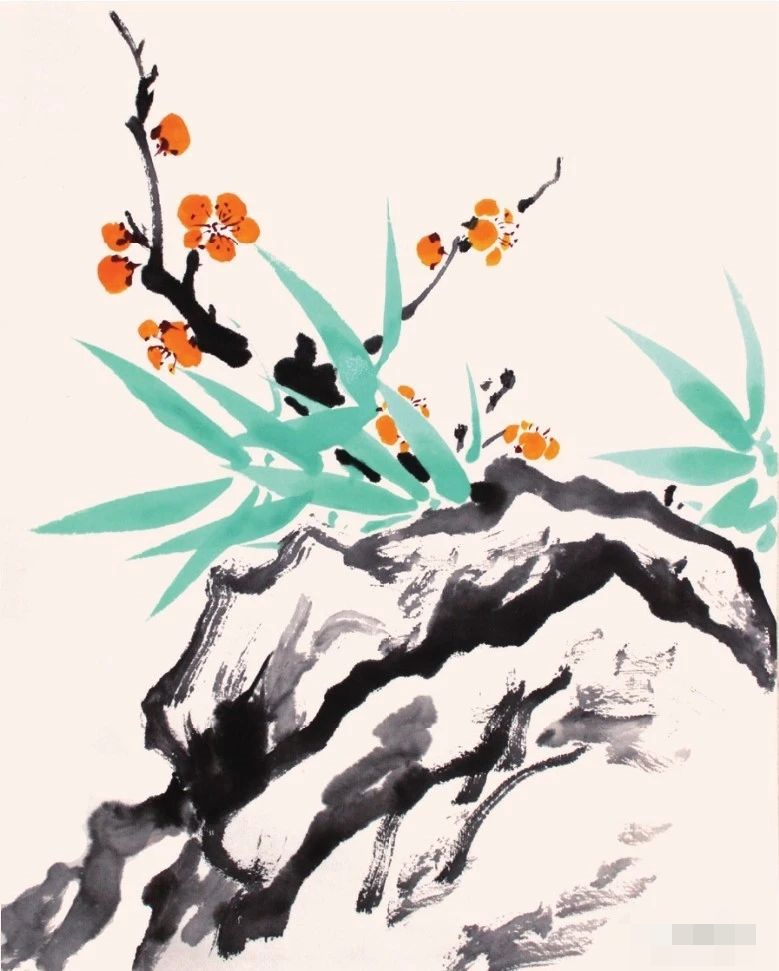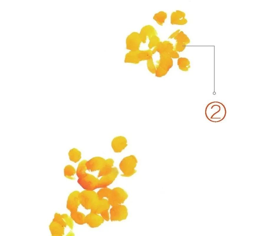 如前文所说,腊梅花色大多为金黄至浅黄。所以在写意腊梅时,其花色多由 藤黄+赭石调配。