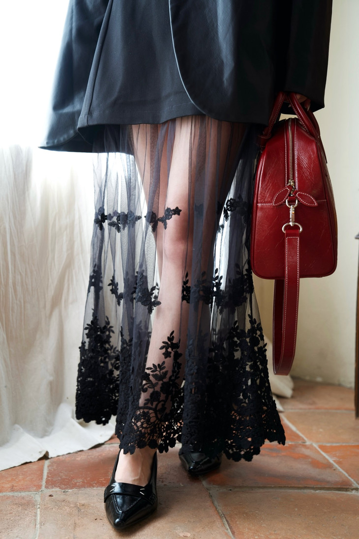 下摆拼接刺绣网纱成熟知性女人味满满,轻盈又浪漫
