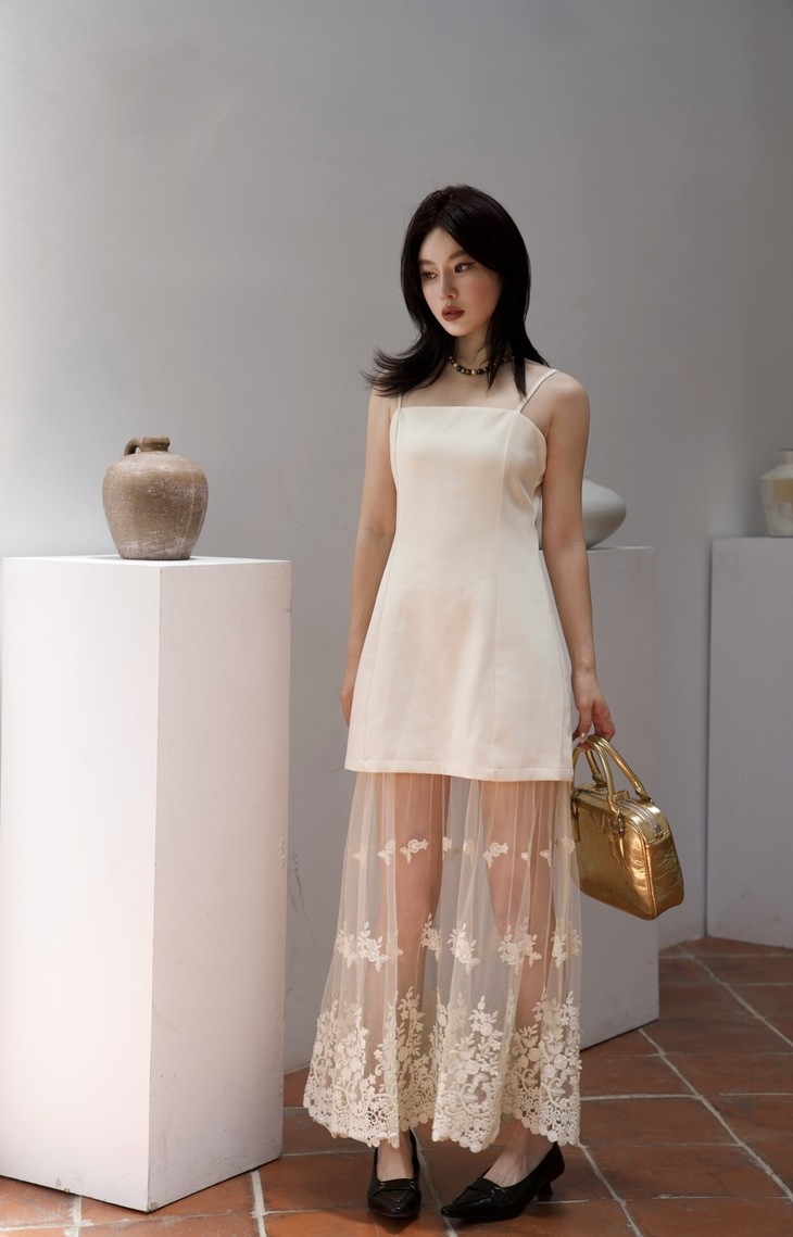 气质蕾丝刺绣拼接吊带裙,高级感拉满