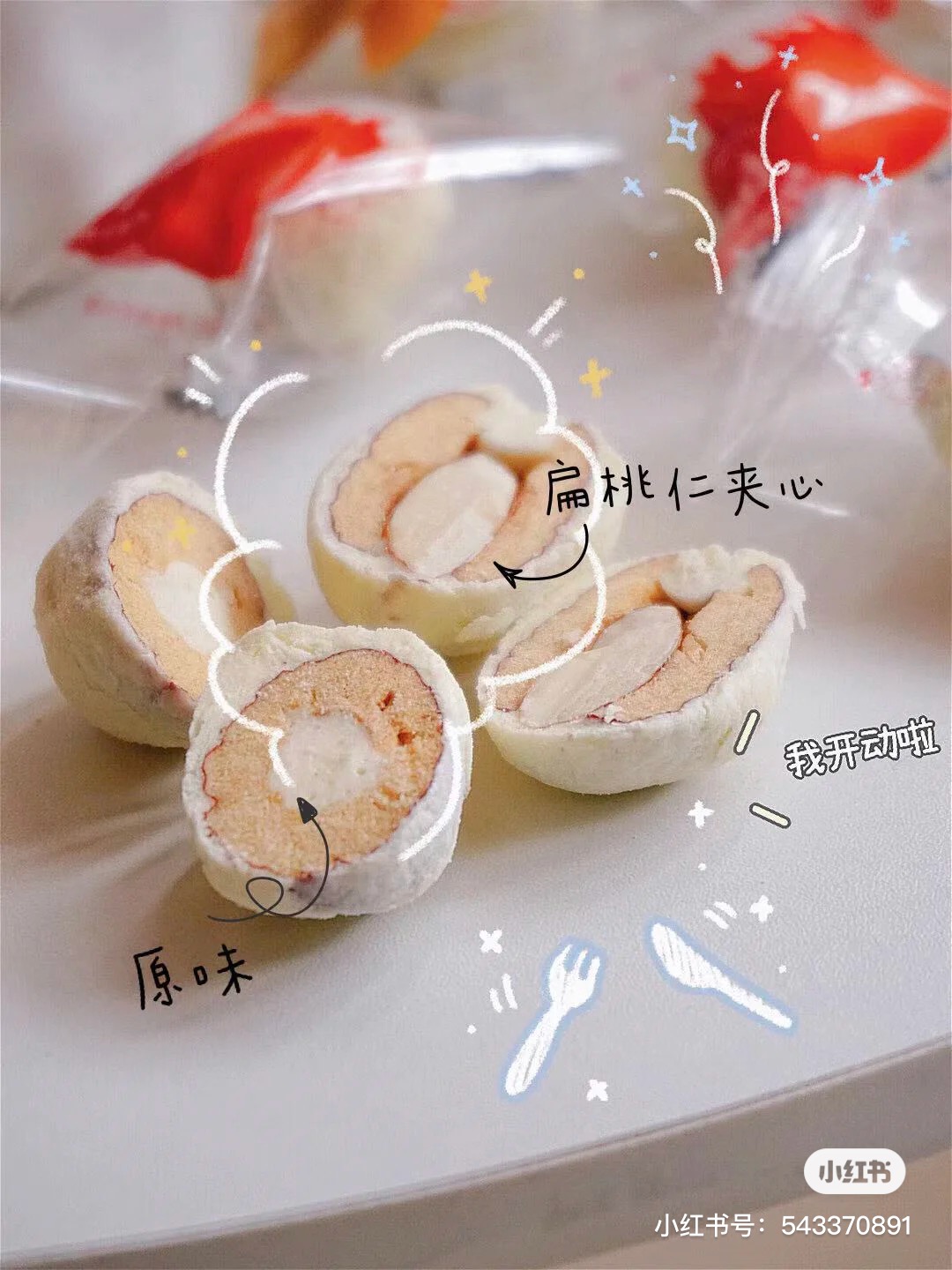 还有扁桃仁夹心口味的,超大颗完整扁桃仁,咬起来嘎嘣脆!