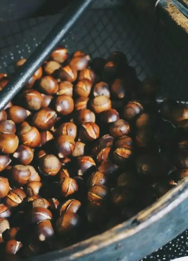 深秋街头,桂花清香怡人,黑漆漆的大炒锅,油亮亮的栗子,刷啦啦在砂砾中翻炒。馥郁的栗香飘满整条街。尝起来软软糯糯,带着一点糖的甜,和一种醇厚的山野的味道,非常迷人。