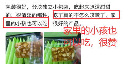 @李女士:雪梨糕撕开就可以直接吃,有梨香味,每天都坚持吃一袋,一如既往的喜欢,效果很好。现在疫情管控严,不用再去药店卖止咳膏了