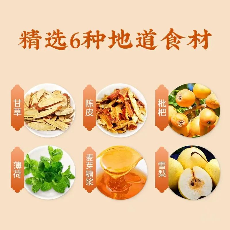 除了“咽喉福星”雪梨、枇杷之外更是辅以陈皮、甘草、薄荷等食材。