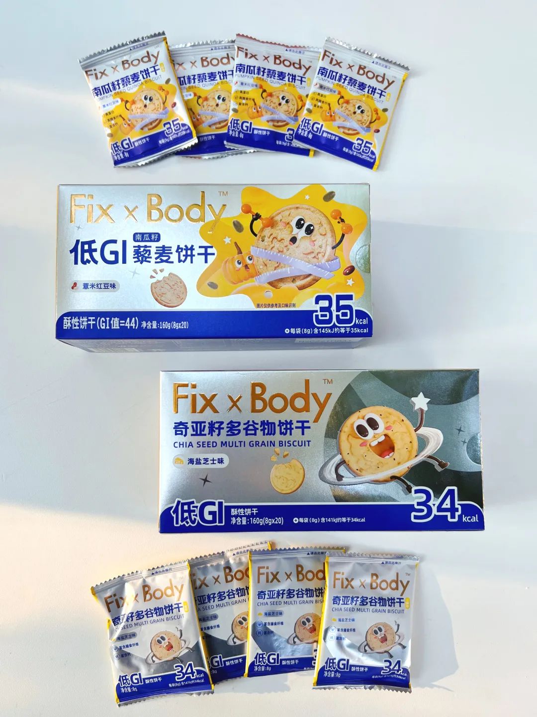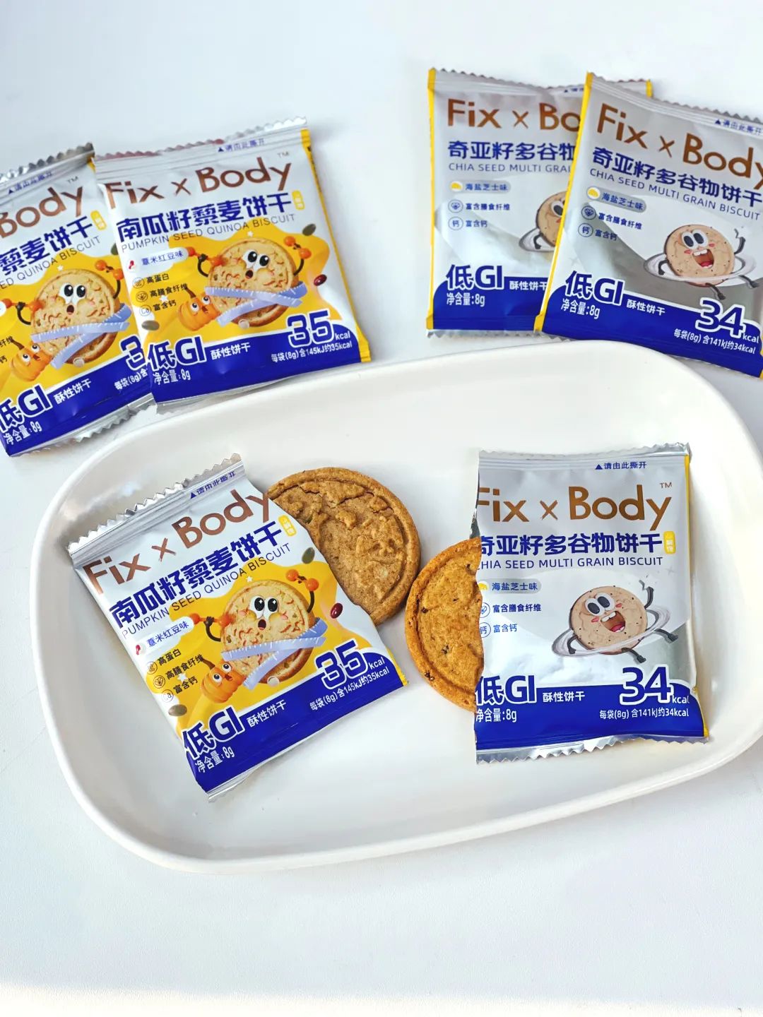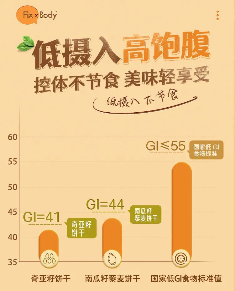 Fix XBody低GI奇亚籽饼干和低GI藜麦饼干刚好满足你的“双重控糖”需求,让你随时快乐解馋又饱腹!