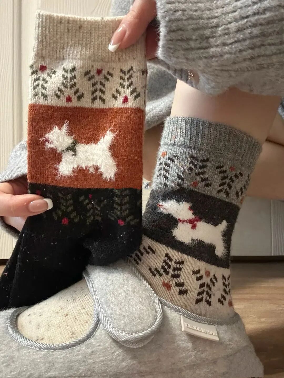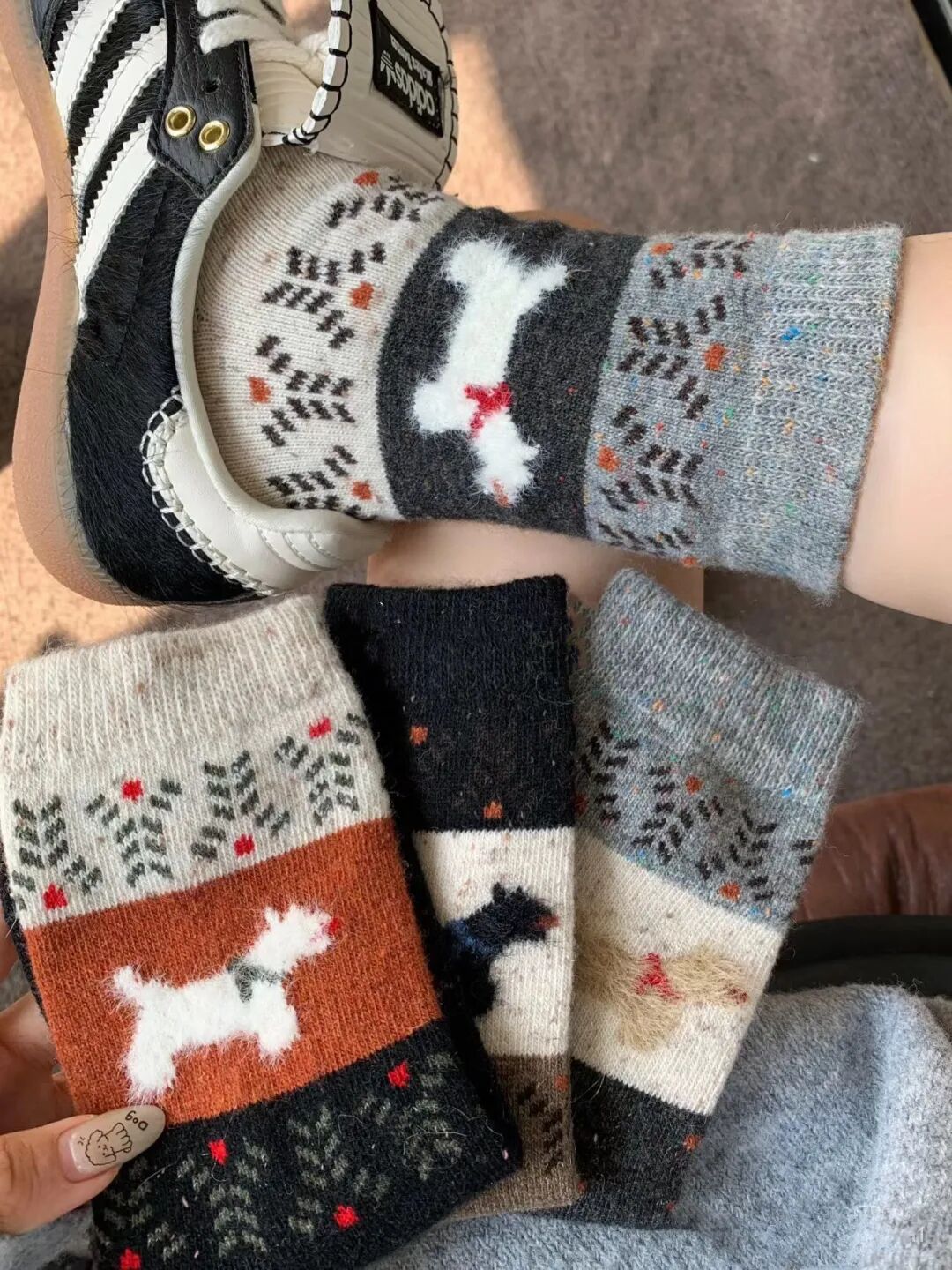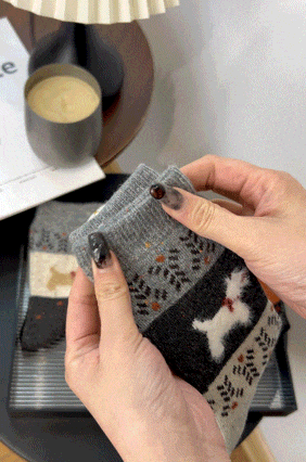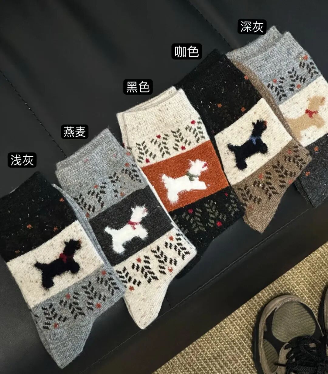 高克重【费尔岛小狗袜】不能错过的秋冬浪漫 百搭 暖融融 图案好特别