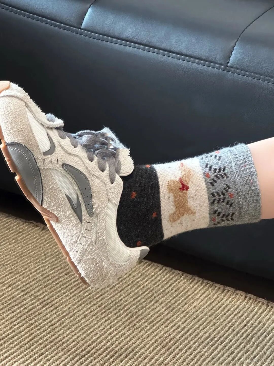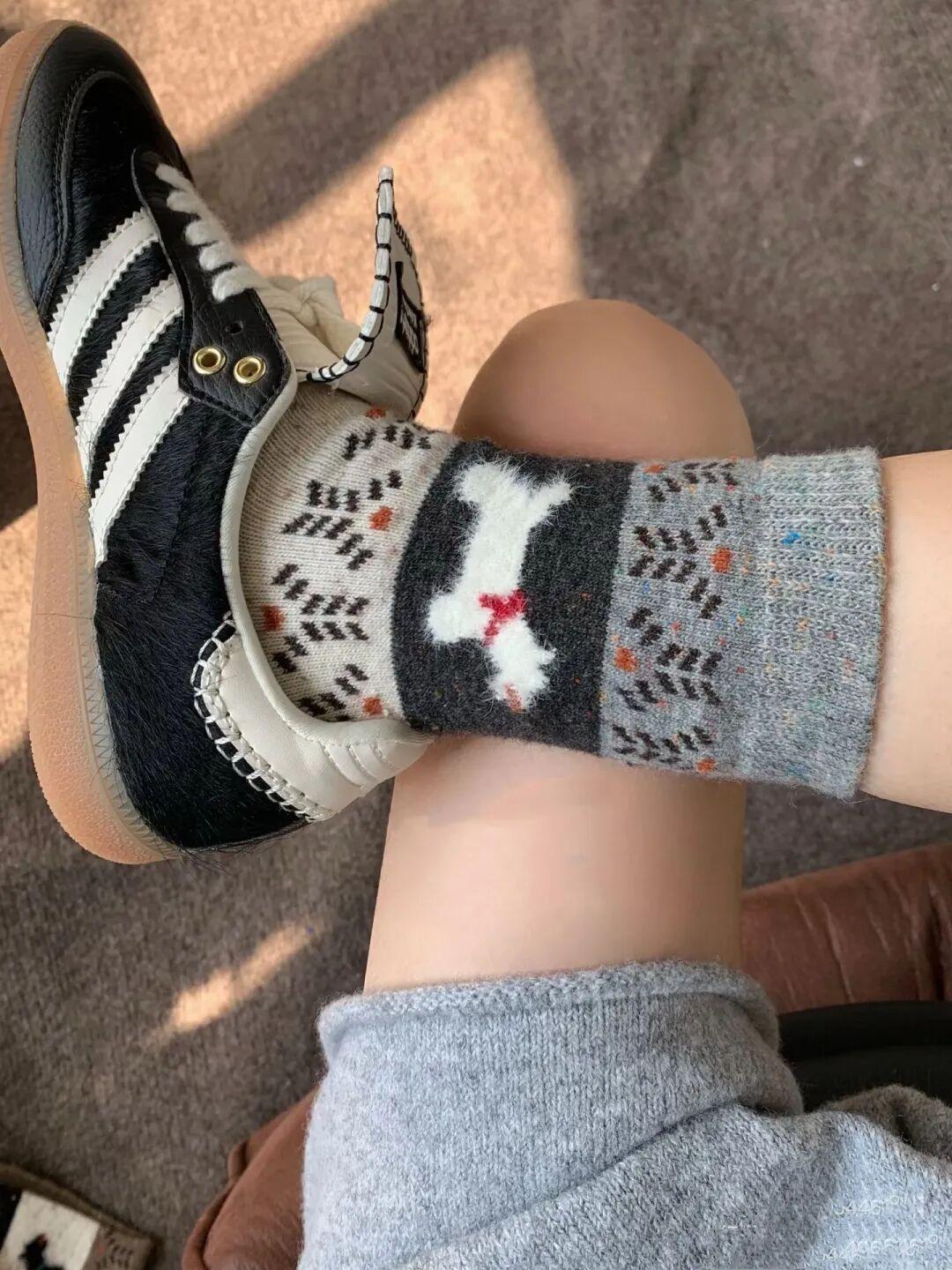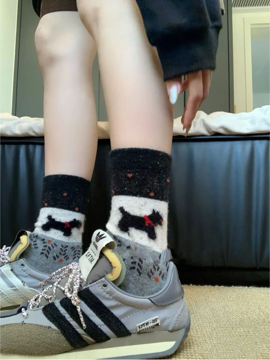 高克重【费尔岛小狗袜】不能错过的秋冬浪漫 百搭 暖融融 图案好特别